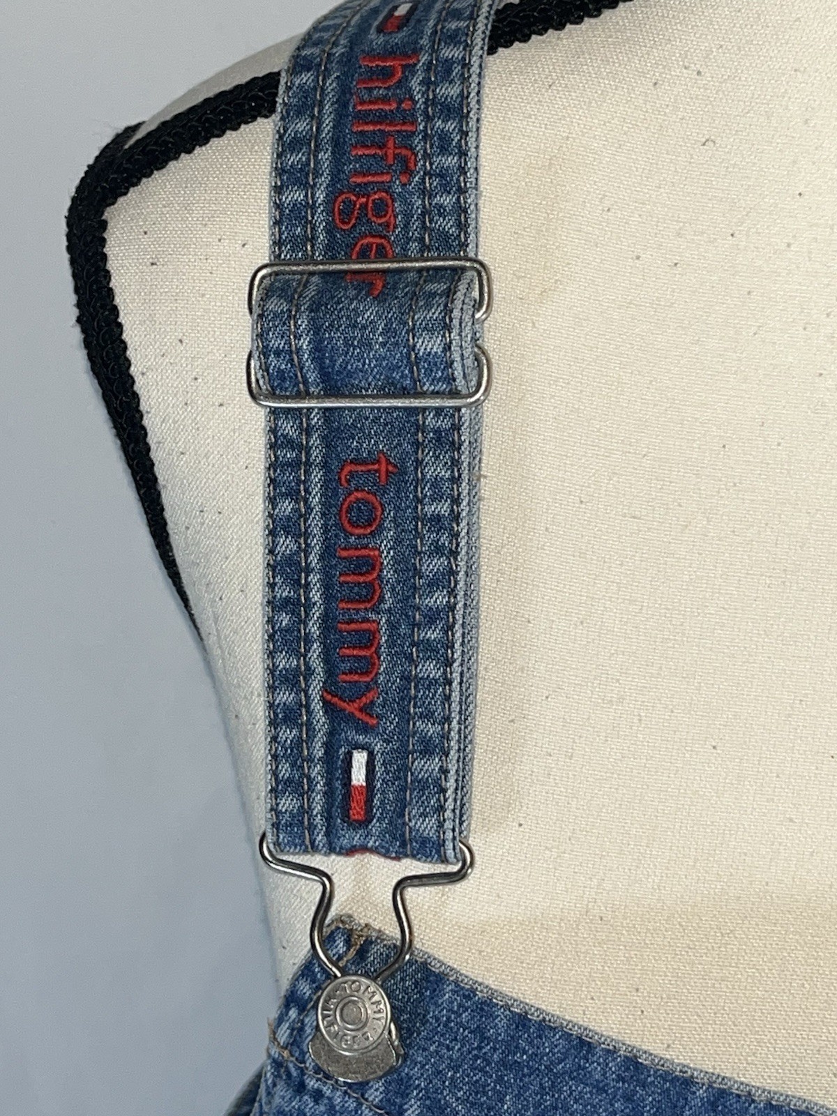 как выглядит Tommy Hilfiger Vintage Jean Jumper Denim Dress Logo Spellout Straps Carpenter фото