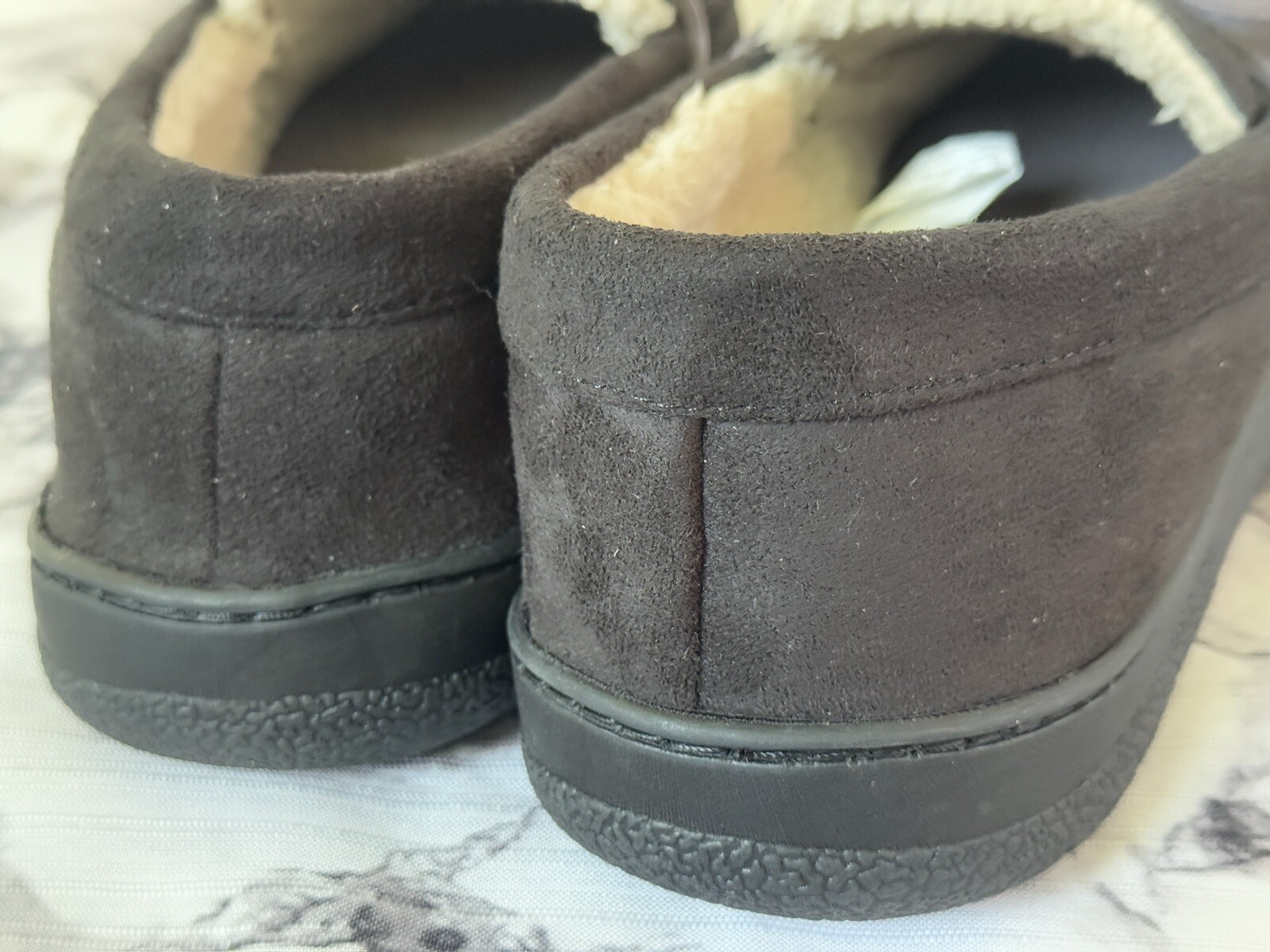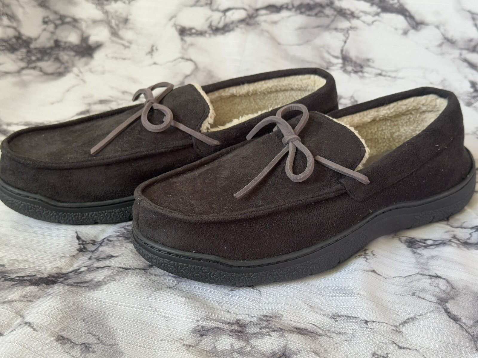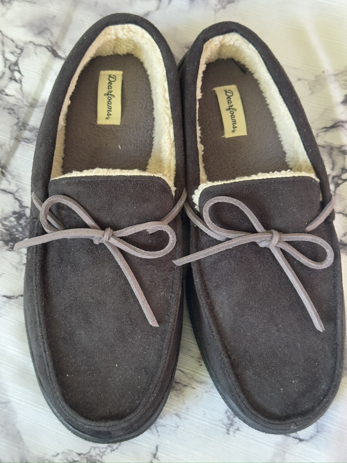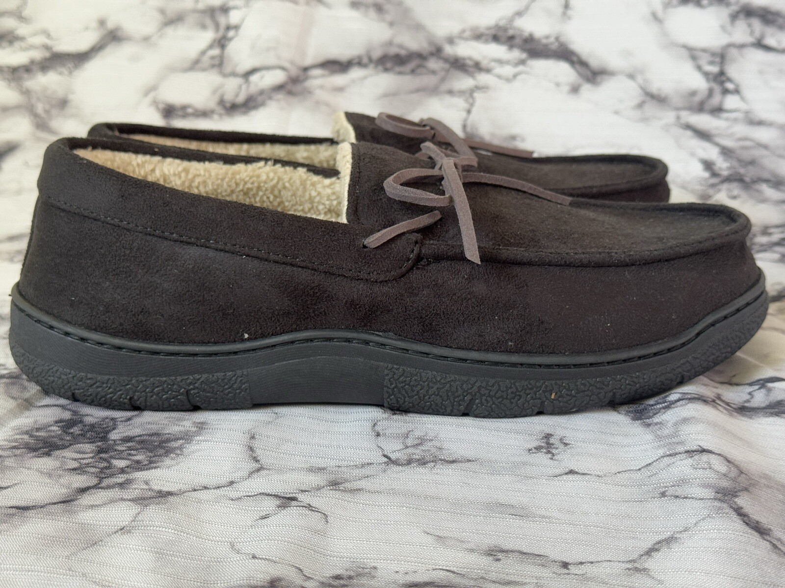 Slippers Dearfoams Men Shearling Side Stitch Moc Black Size 11-12 New
