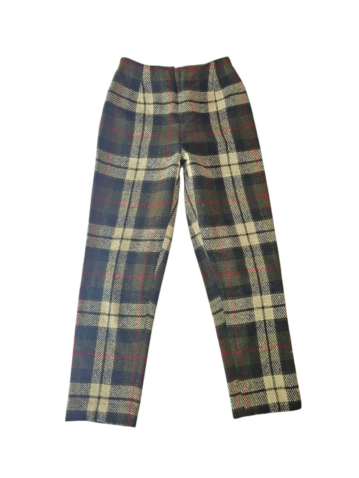 как выглядит Vintage 1950-60s Wool Plaid Green Cigarette Slim Hi Waist Pants W24" фото