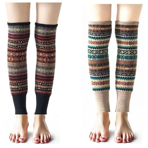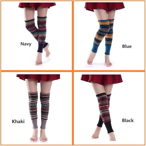 Leg Warmers for Women, Bohemian Cable Knitted Thicker Warm Medium Black,khaki