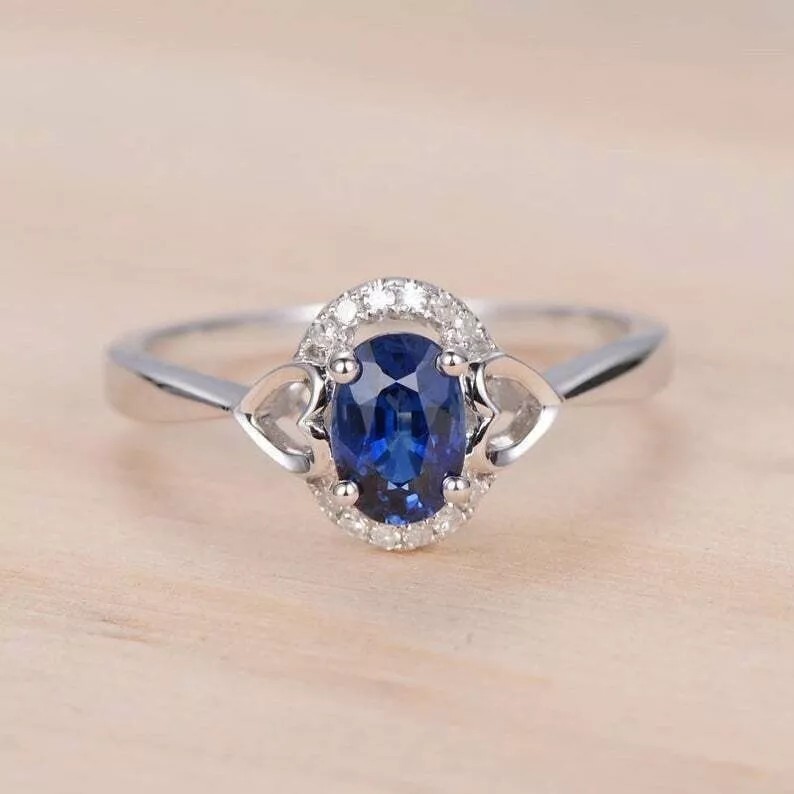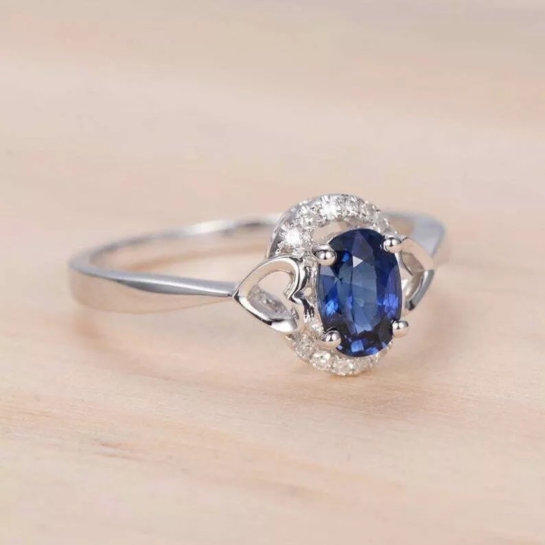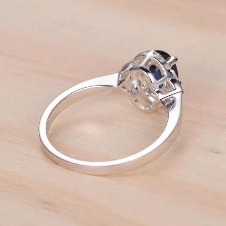 как выглядит 2.40Ct Oval Cut Simulated Blue Sapphire Promise Ring In 14k White Gold Plated фото