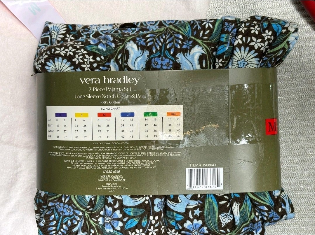 как выглядит Vera Bradley 2 Piece Pajama Set Womens Sz Small Green Floral Cotton Long Sleeve фото