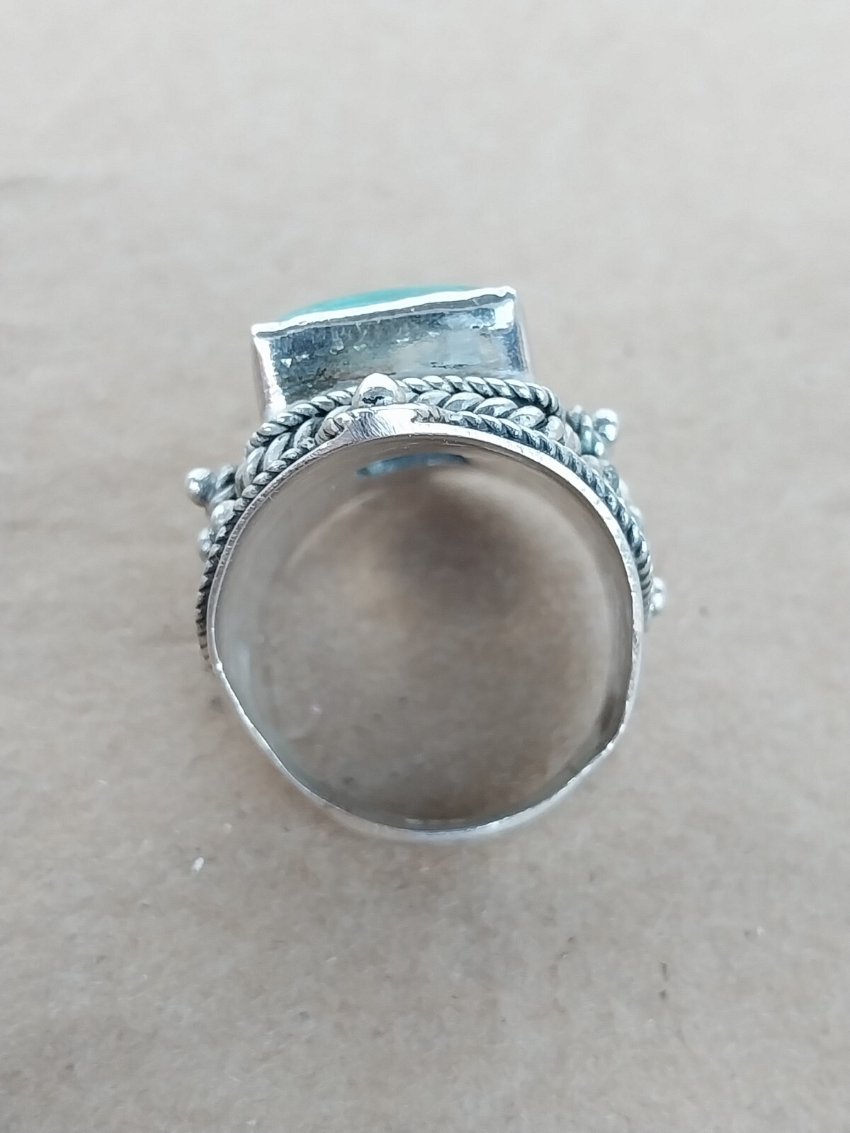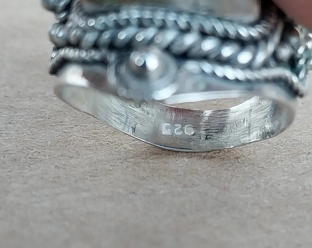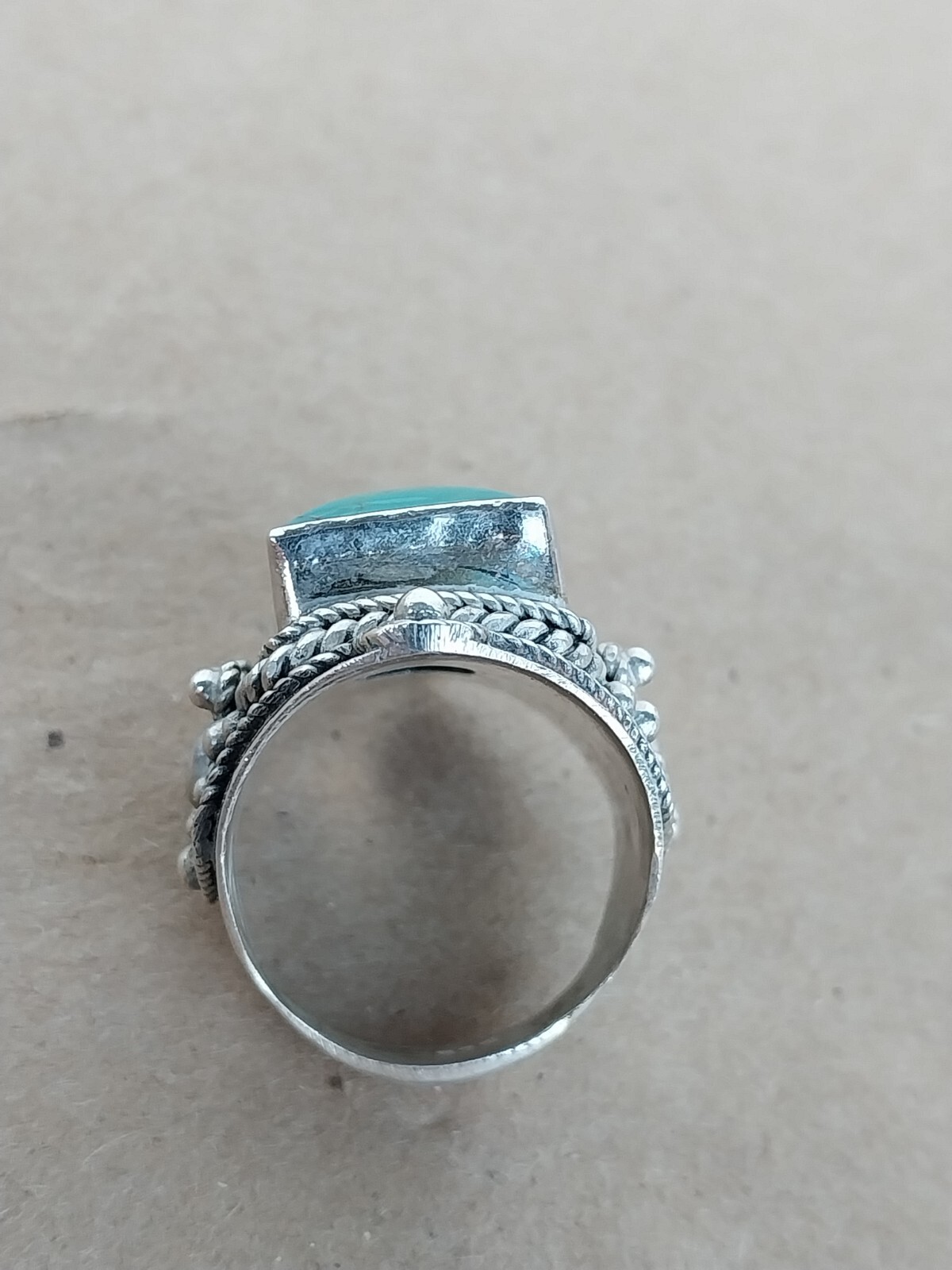 Vintage Sterling Silver 925 Filigree Turquoise Ring Size 7.75