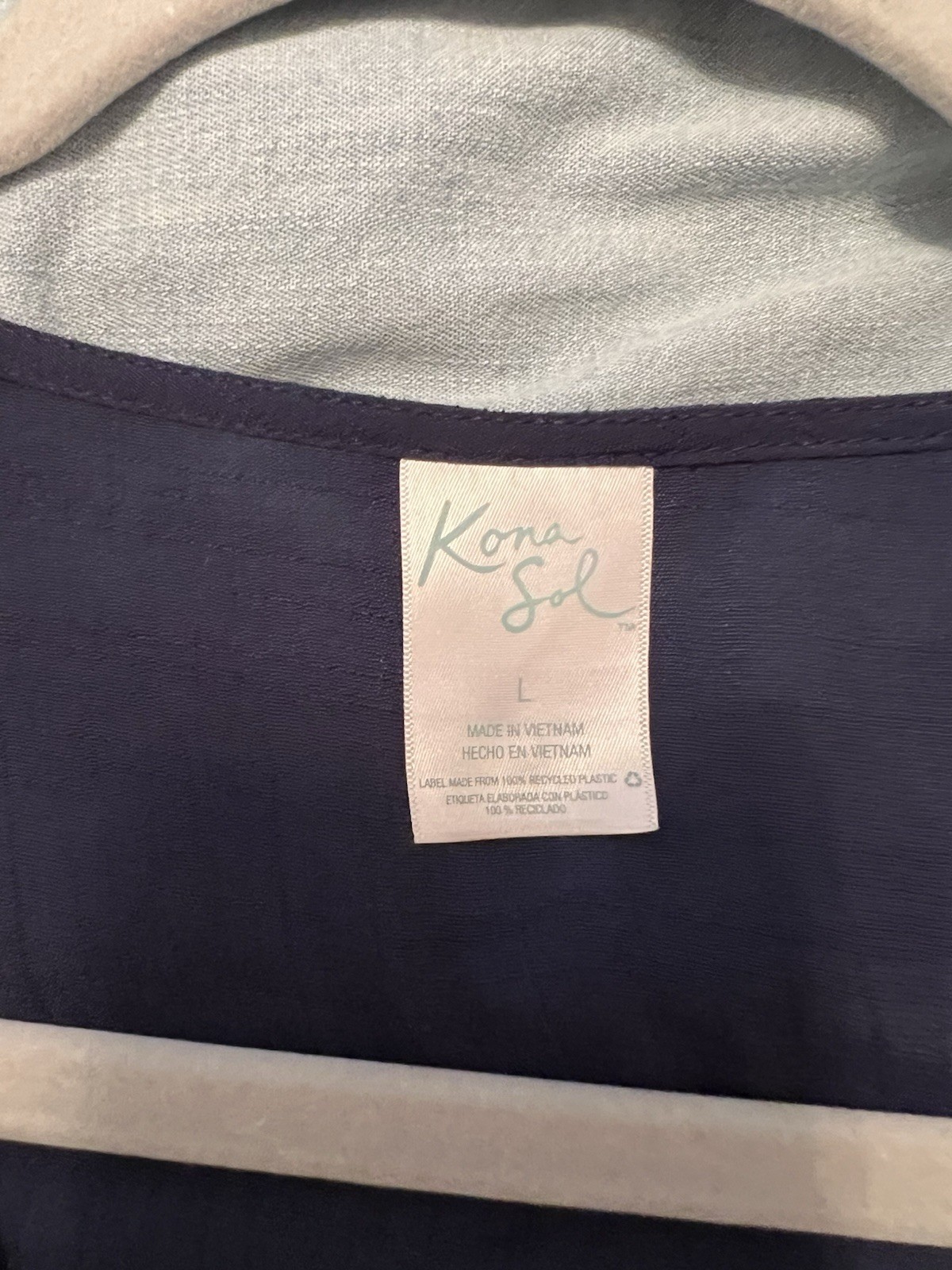 как выглядит Kona Sol Lightweight Navy Blue Beach Cover Up with Sheer Long Sleeves Size L фото