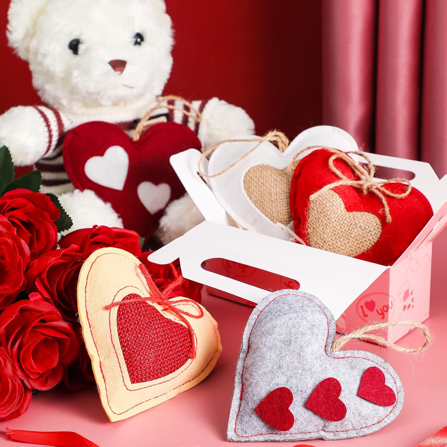 20 Valentine s Day Felt Heart Ornaments for Tree Wedding Party Decor