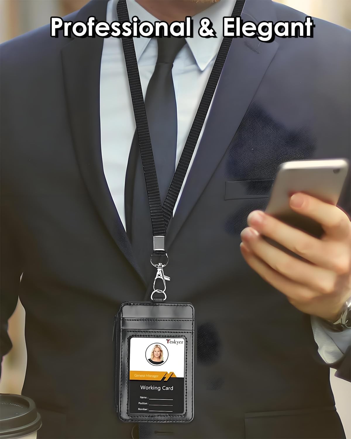 Teskyer ID Badge Holder with Lanyard, 1 Zip Pocket and 4 Card Slots, Lanyard ID