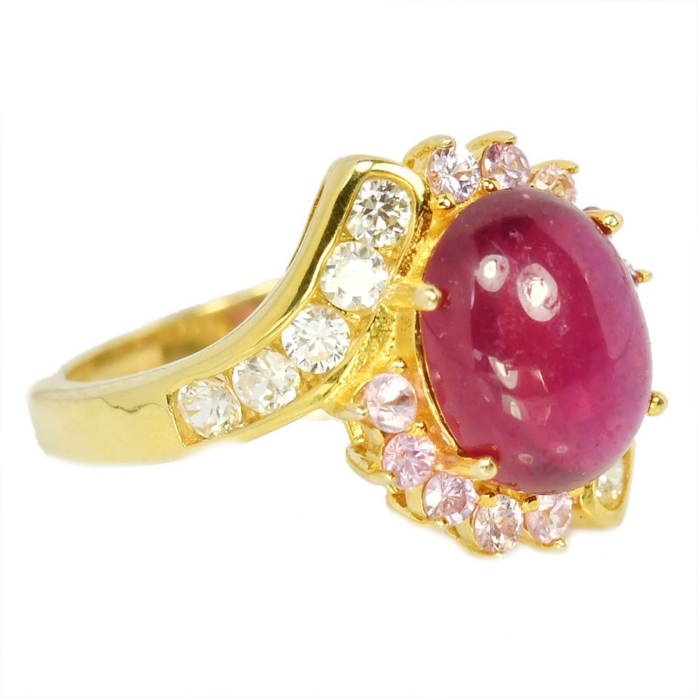 как выглядит STERLING 925 SILVER RING GENUINE BLOOD RED RUBY OVAL CAB WHITE CZ SIZE 7 фото