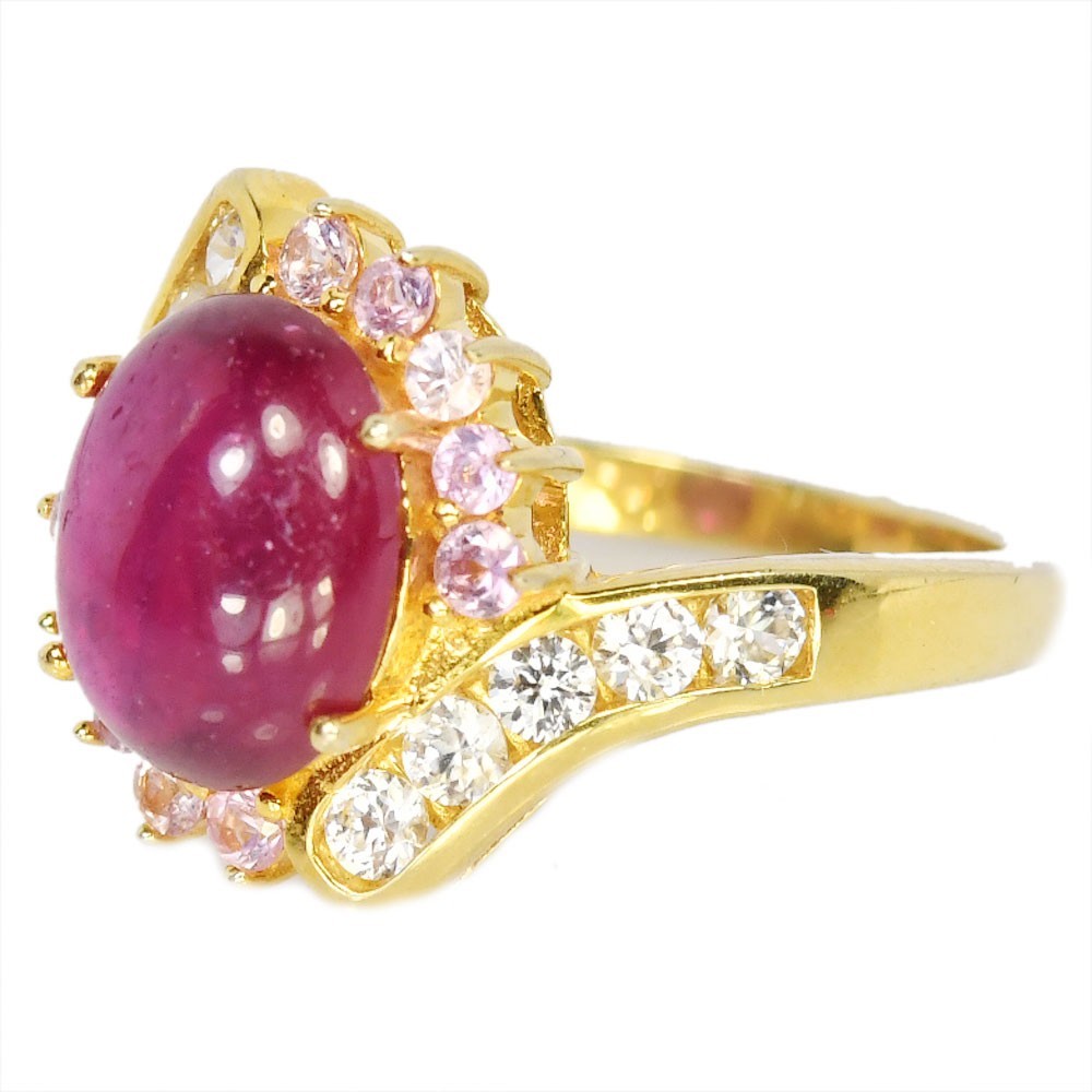 STERLING 925 SILVER RING GENUINE BLOOD RED RUBY OVAL CAB WHITE CZ SIZE 7