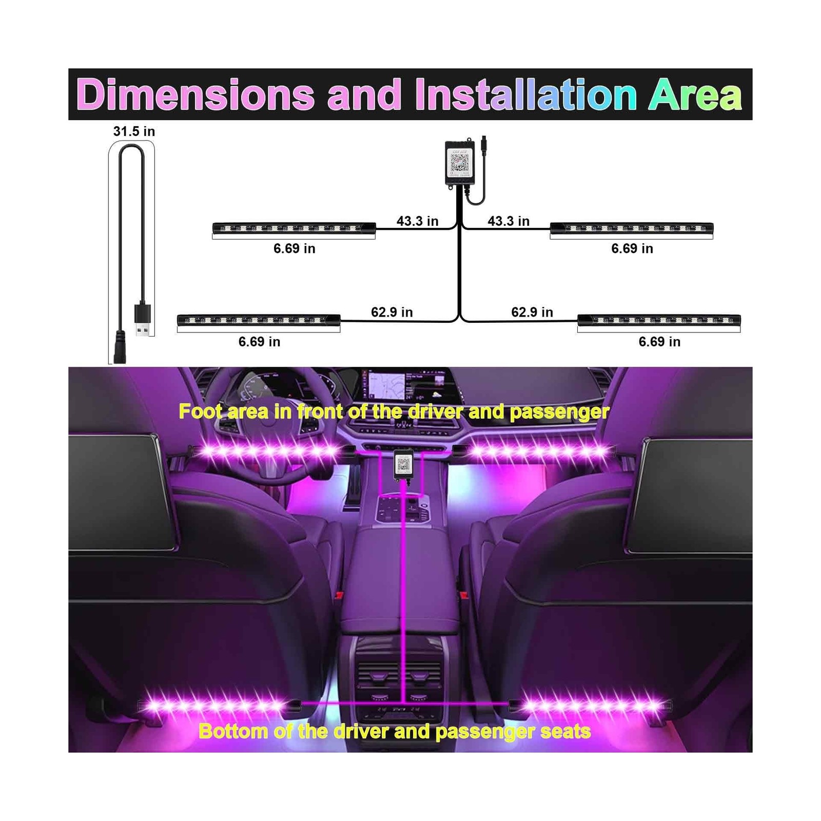 как выглядит Car Interior Lights, 5V LED Strip Lights with USB Adapter, Ambient Car Lighti... фото