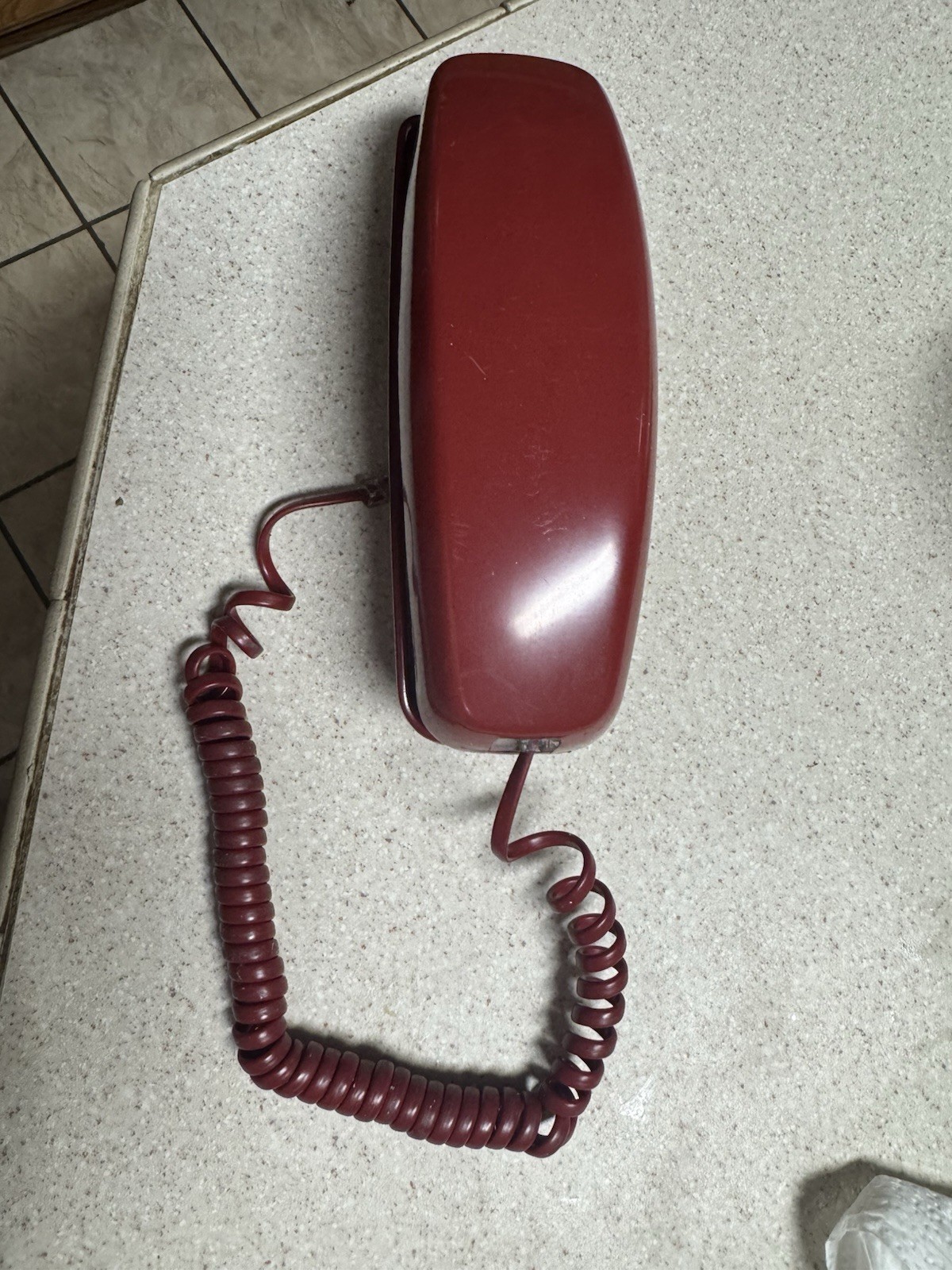 • Vintage Red Western Electric Trimline Rotary Phone Desk Model, See Pictures