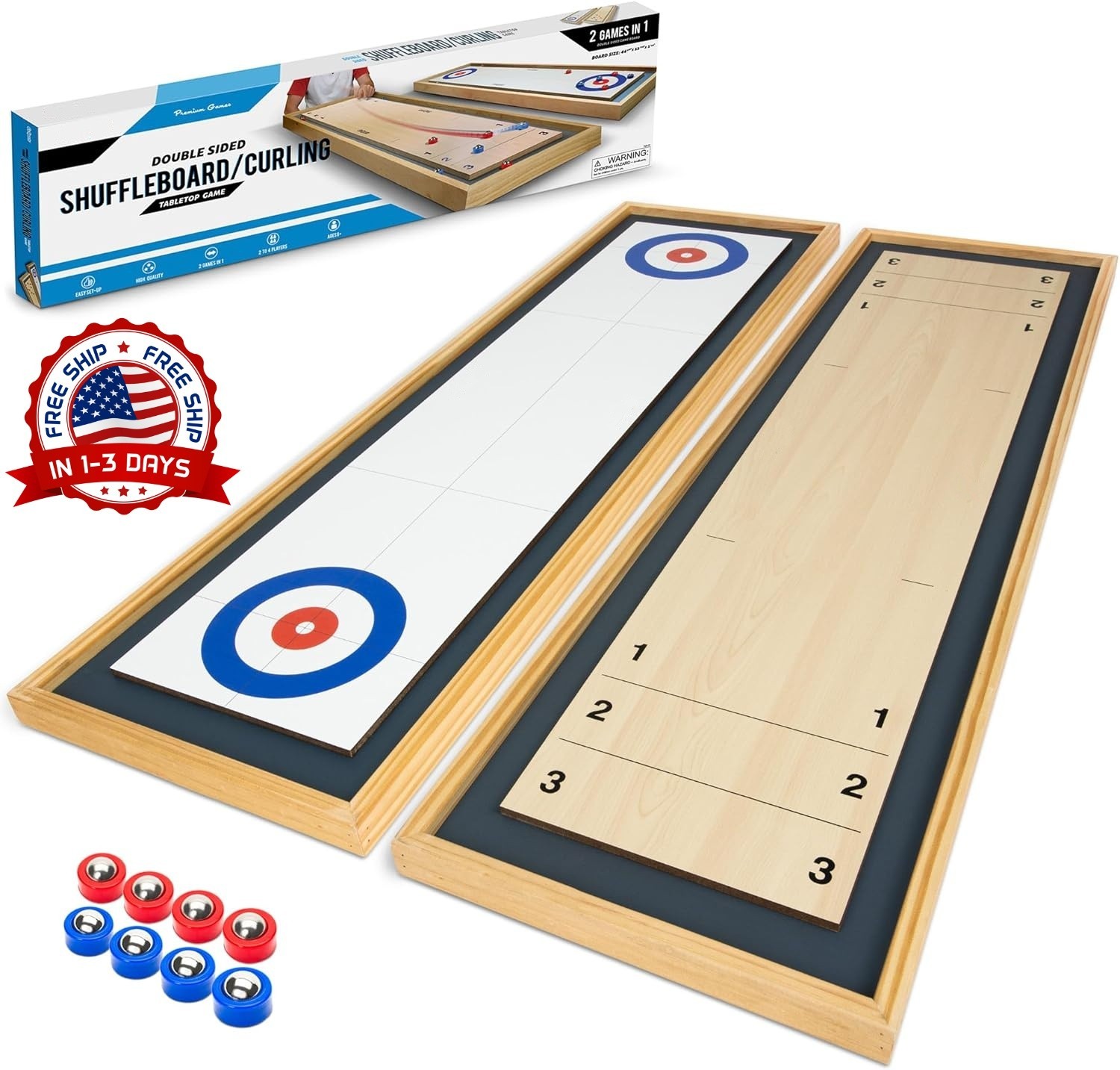 Juego de mesa 2 en 1 de tejo y curling, incluye 8 rodillos, 45L x 13W NUEVO US