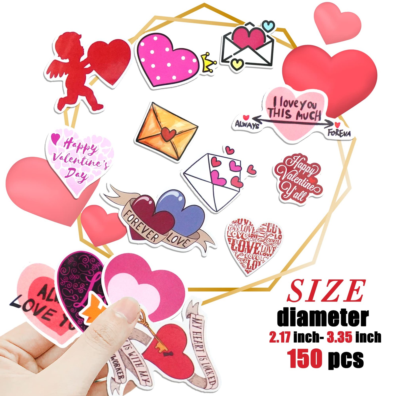 150PCS Valentines Day Stickers My Sweet Love Waterproof Heart Stickers Conver...