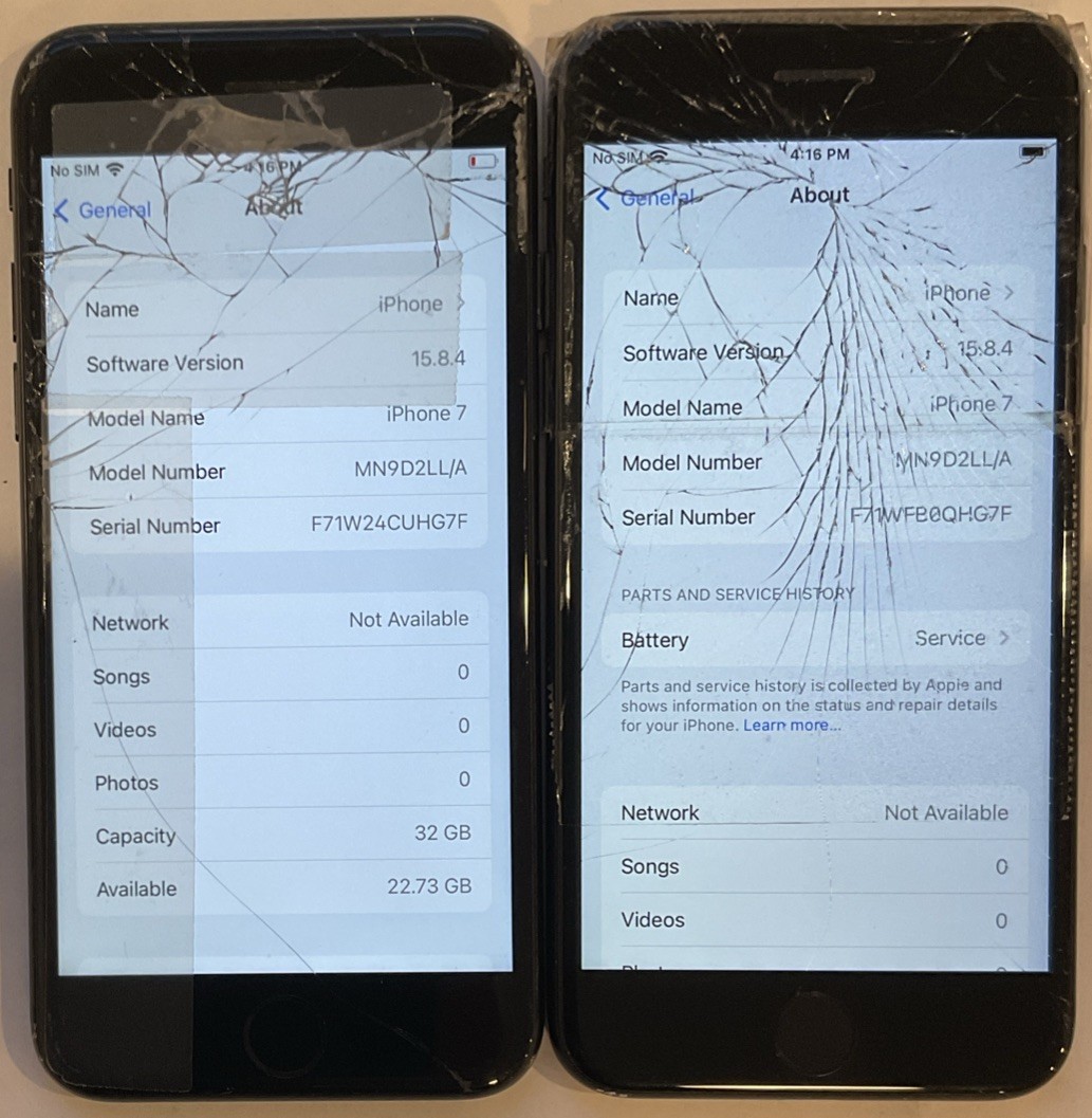 как выглядит TWO USED GSM UNLOCKED APPLE iPhone 7, 32GB A1778 MN9D2LL/A PHONES FOR REPAIR фото