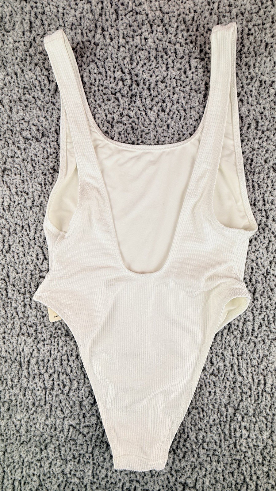 как выглядит Aerie White Ribbed One Piece Swimsuit Cheeky Cut Size M NWT фото