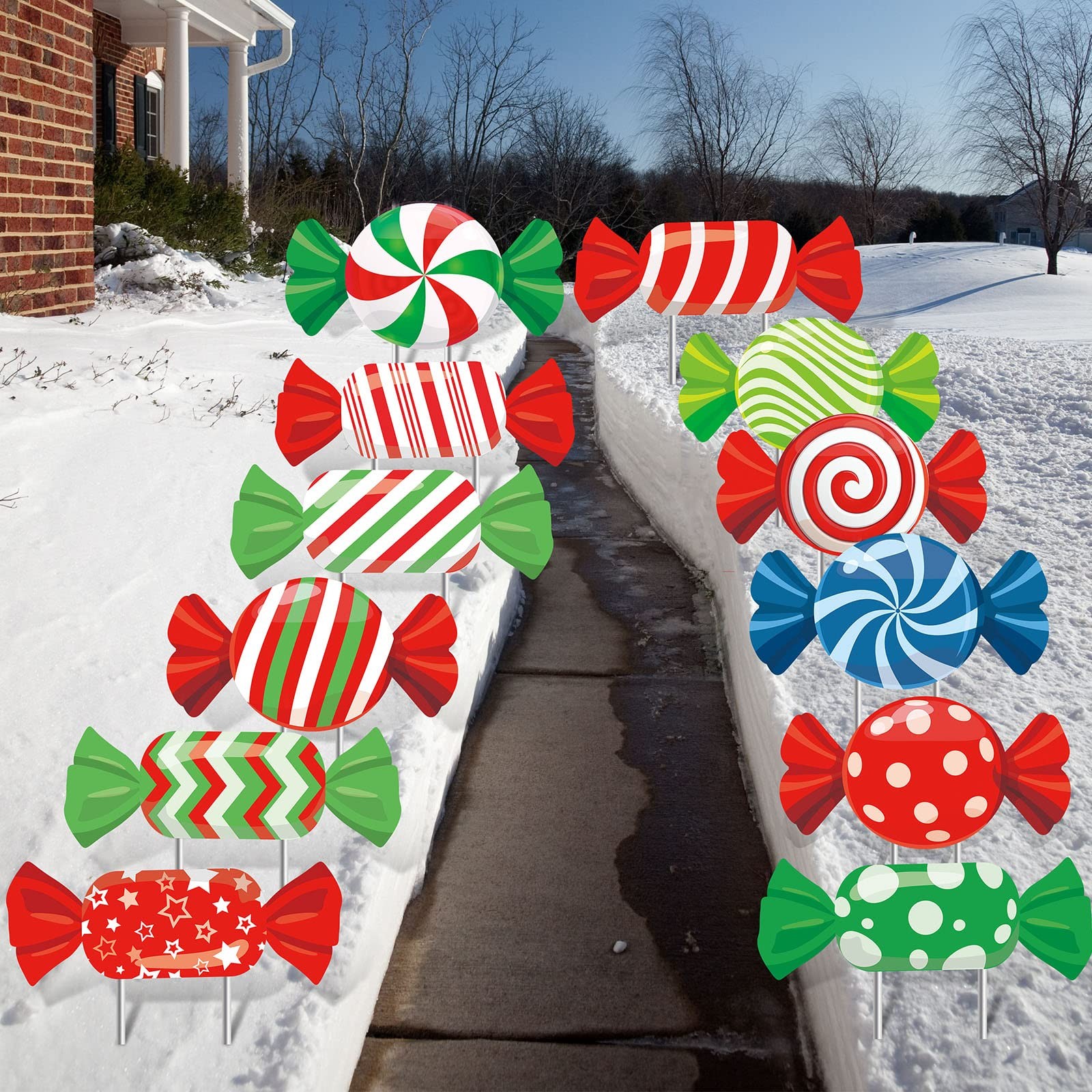 24 Pieces Christmas Candy Outdoor Lawn Yard Sign Yard Stakes Christmas Holida...