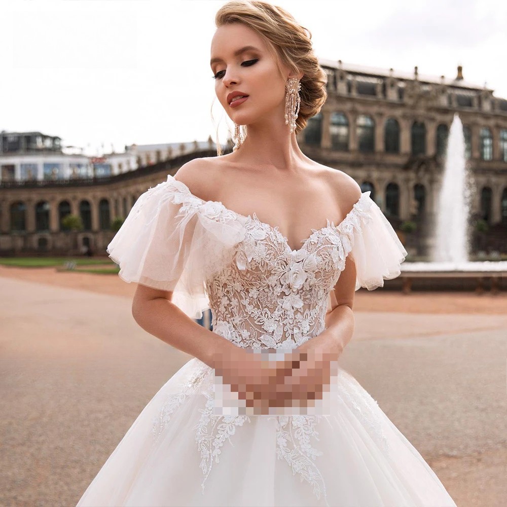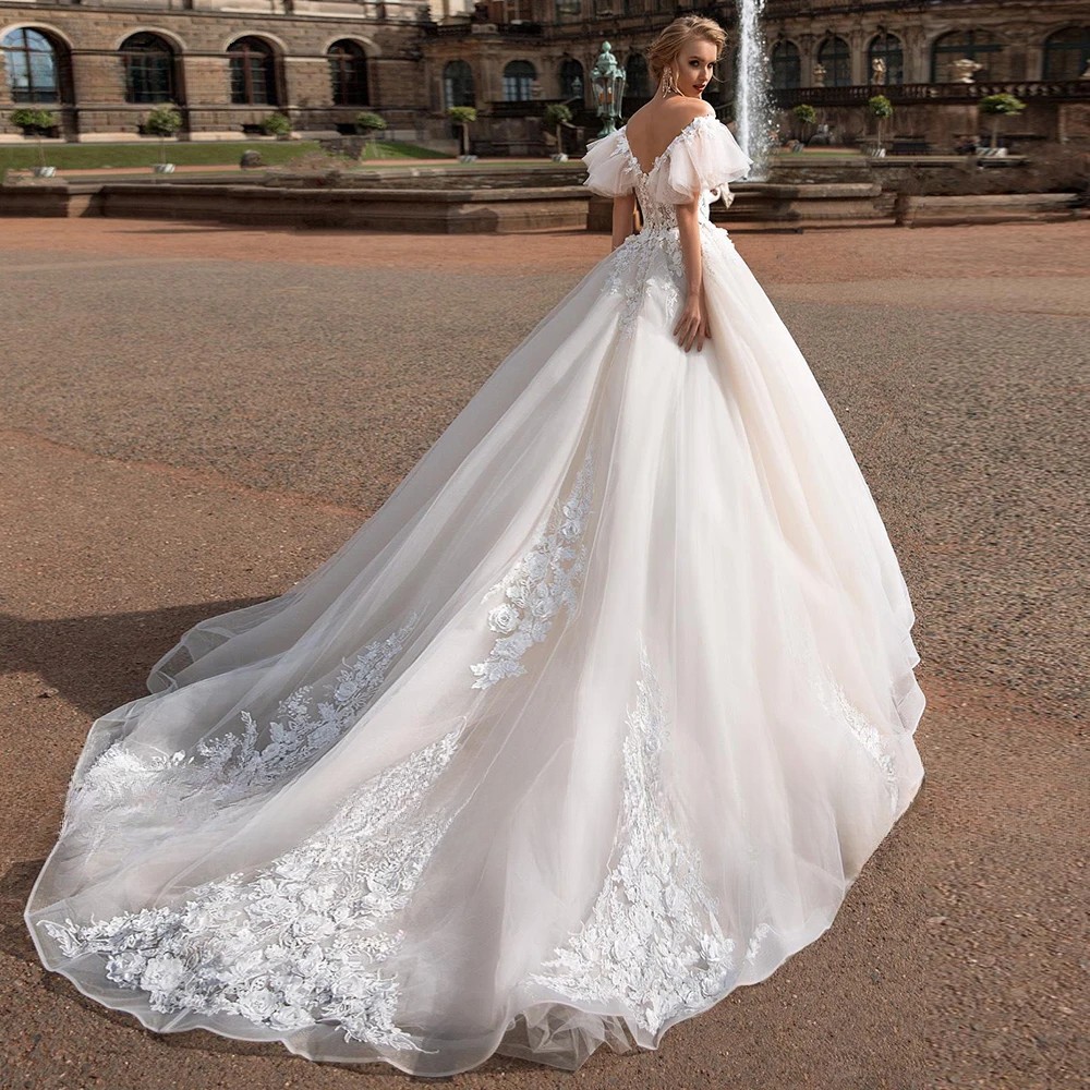 как выглядит New A Line Wedding Dresses V Neck Applique Lace Backless Bridal Gown Custom Size фото