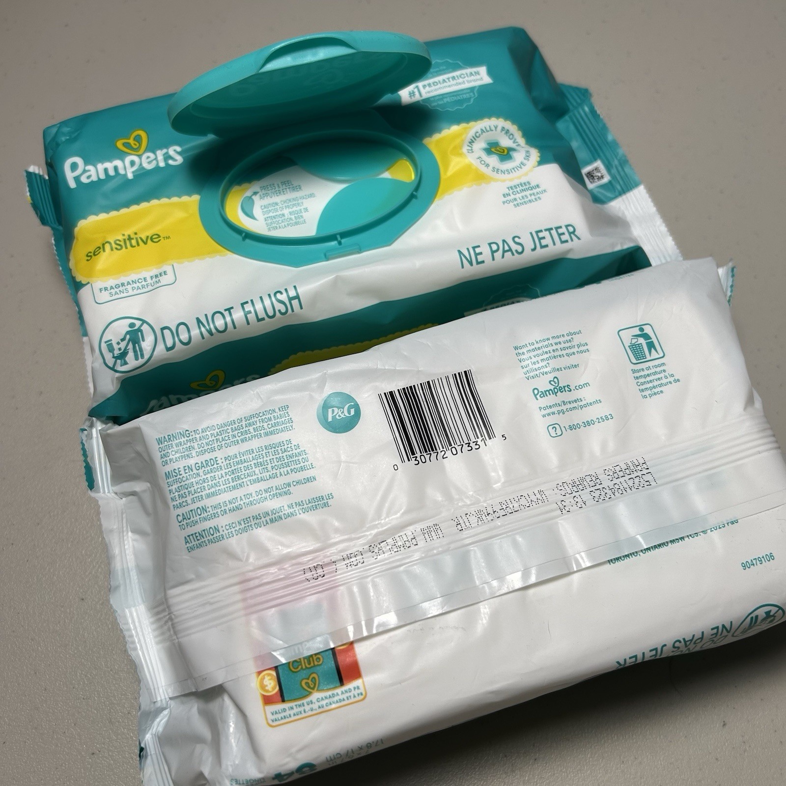 как выглядит Pampers Sensitive Baby Wipes Fragrance Free 2 Packs 84 Each Pack 7" x 6.7" фото