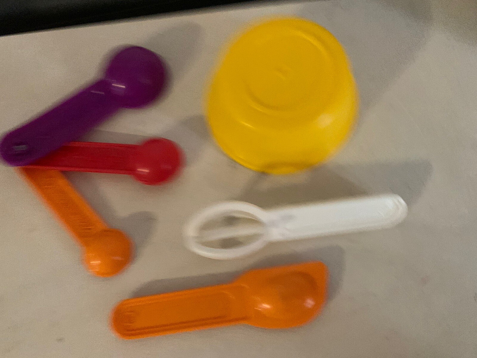 как выглядит 1987 Fisher Price Fun With Food Baking Set BOWL WHISK SCRAPER MEASURE SPOONS LOT фото