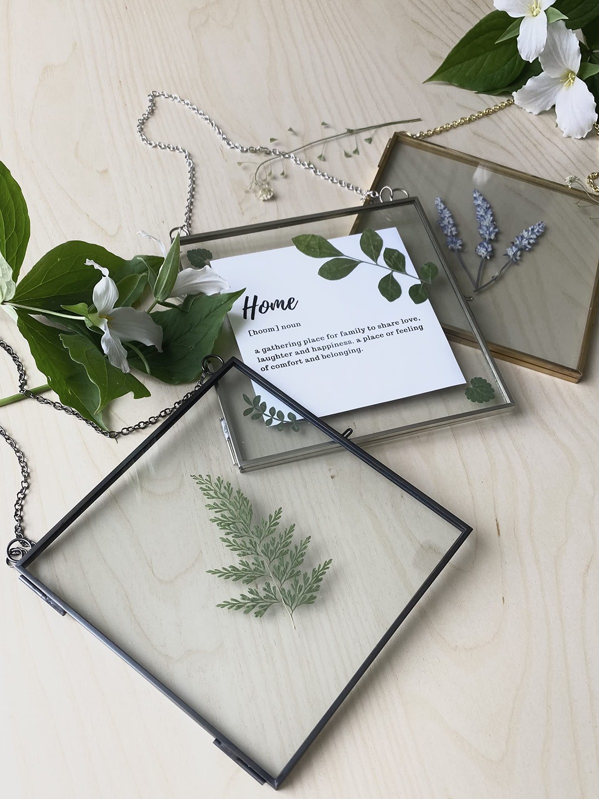 Glass Frame for Pressed Flowers, Leaf and Artwork - Hanging Square Metal Pict...