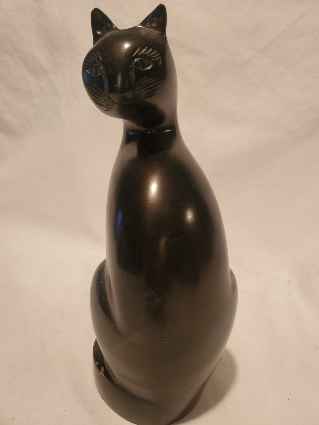 как выглядит Cat Cremation Bronze Urn, Black, Slightly Used фото