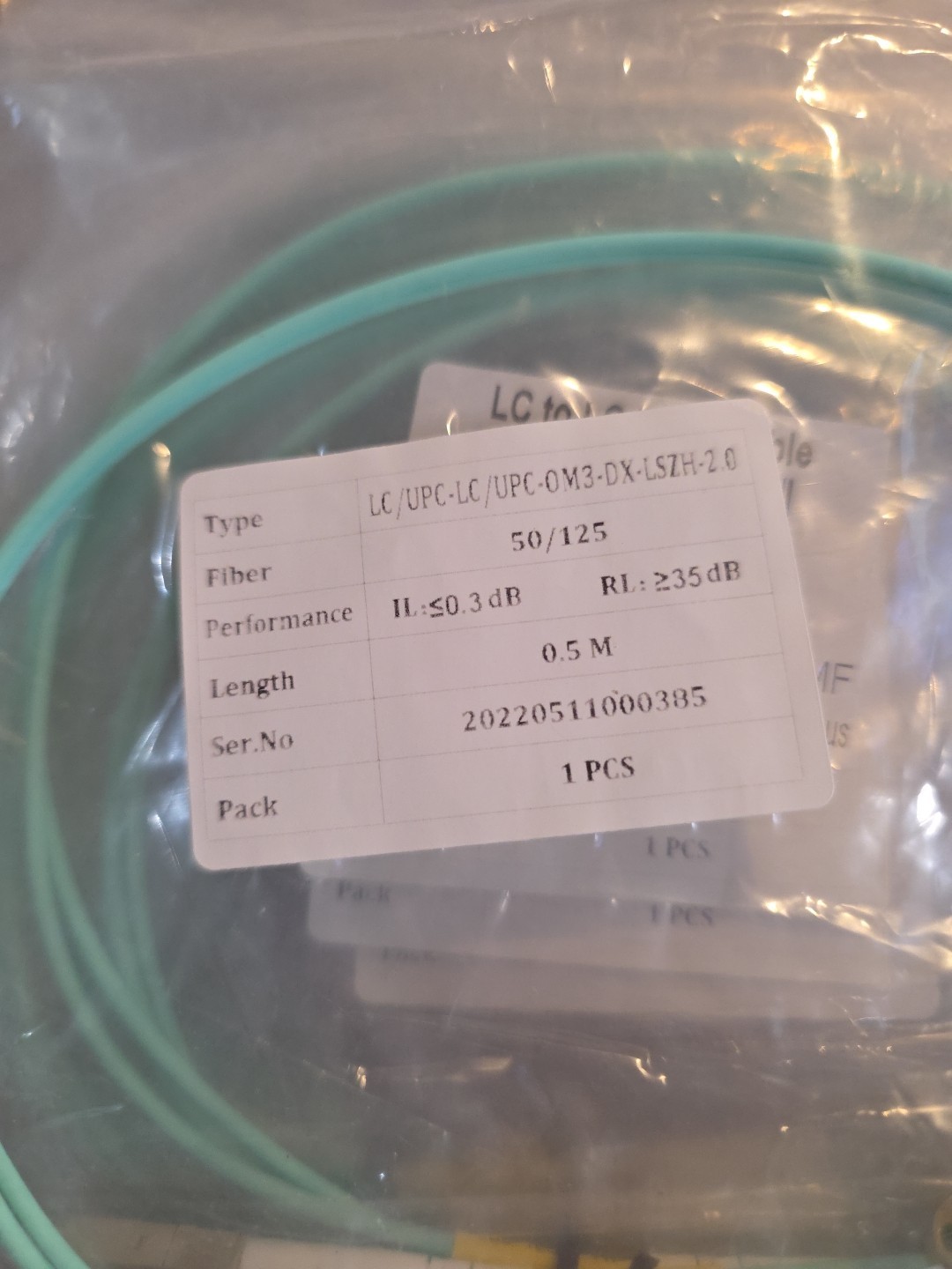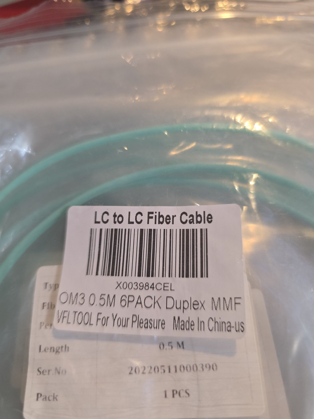 как выглядит 6pk OM3 LC to LC Fiber Optic Patch Cable Multimode Duplex 50/125 Aqua LC LC .05M фото