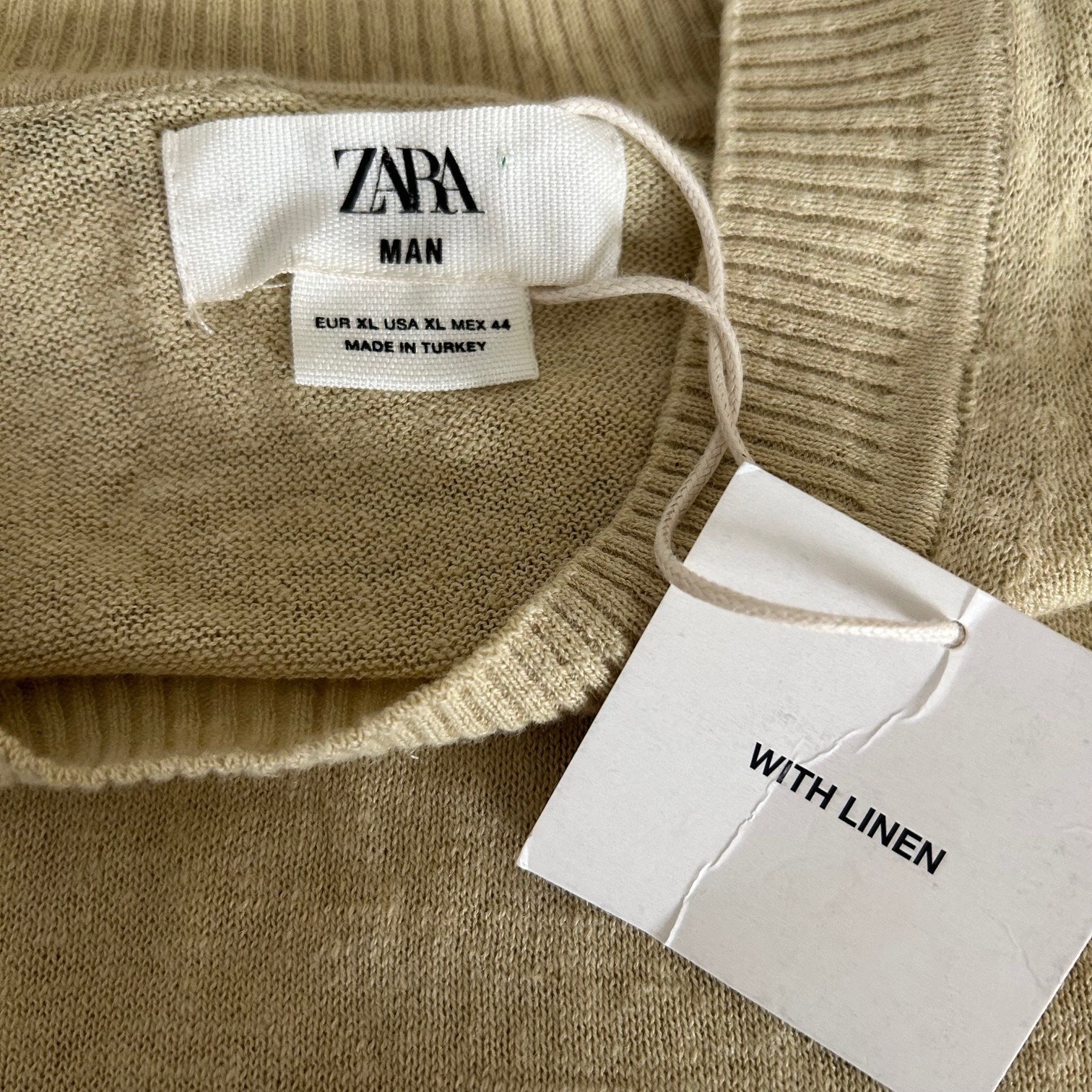 Zara Mens Sweater Linen Blend Crewneck Light Weight Classic Preppy SZXL