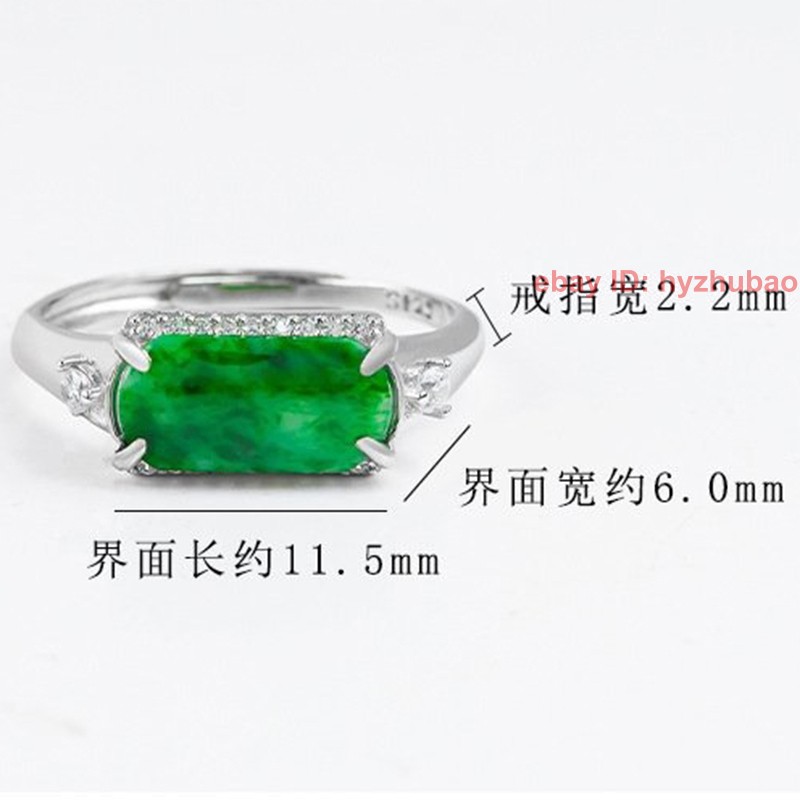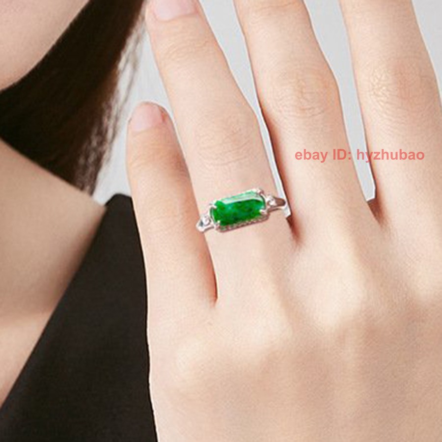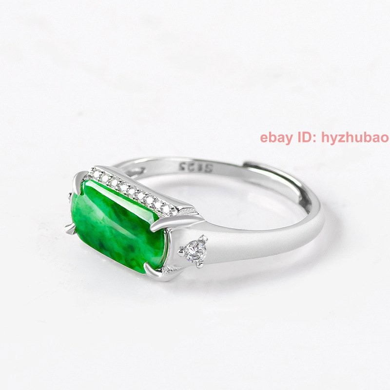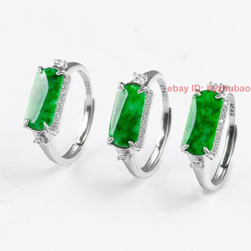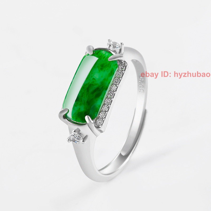 Certified Grade A Natural Green Jade jadeite S925 Silver Inlay Ring Adjustable