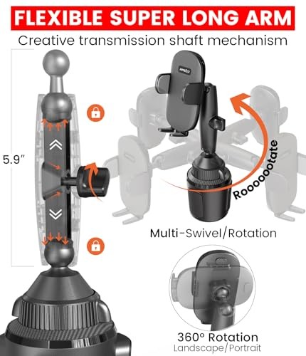 Sturdy Cup Phone Holder Mount for Car, Adjustable Height Reach, Flexible