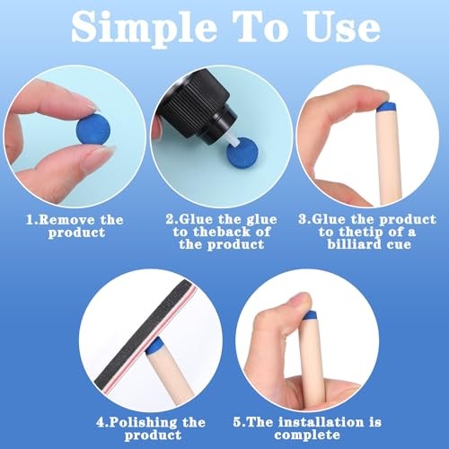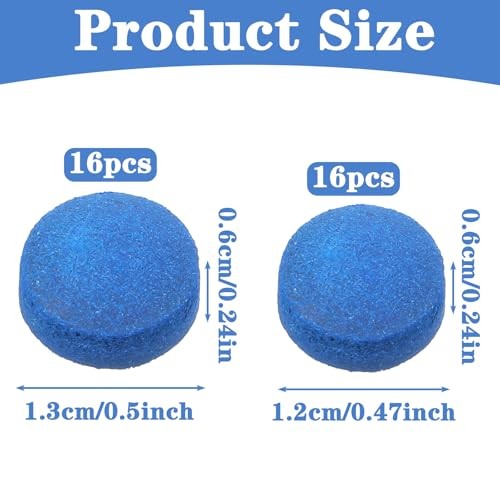 32Pcs Billiard Pool Cue Tips, 13/12mm Blue Leather Pool Stick Replacement Tips