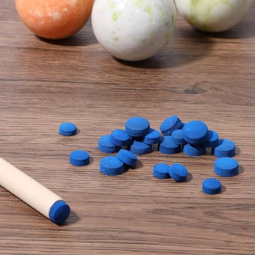 32Pcs Billiard Pool Cue Tips, 13/12/10/9mm Blue Leather Pool Stick Replacement
