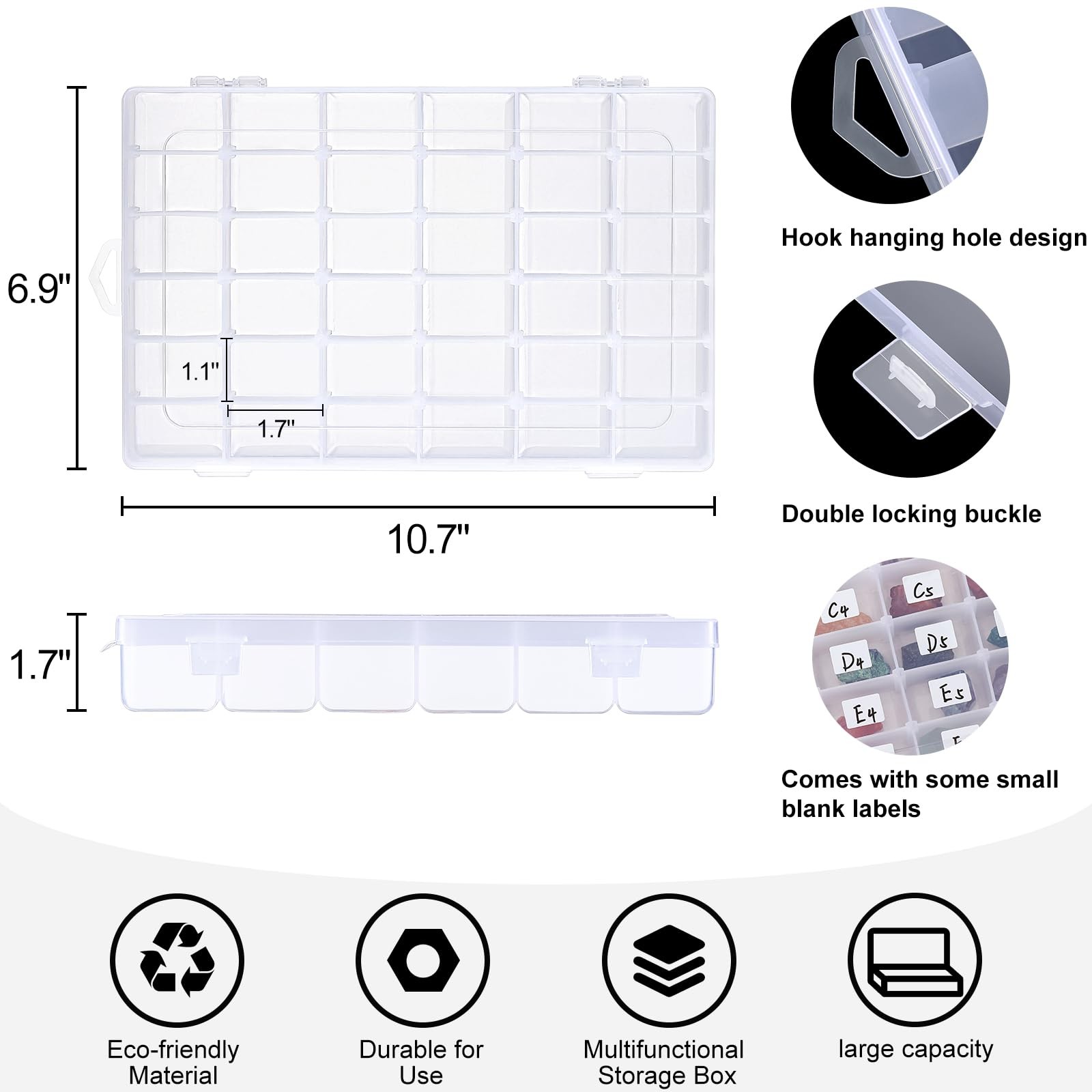 как выглядит Clear Plastic Organizer Box 36 Grids, 2 Pack, Craft Bead Storage Container фото