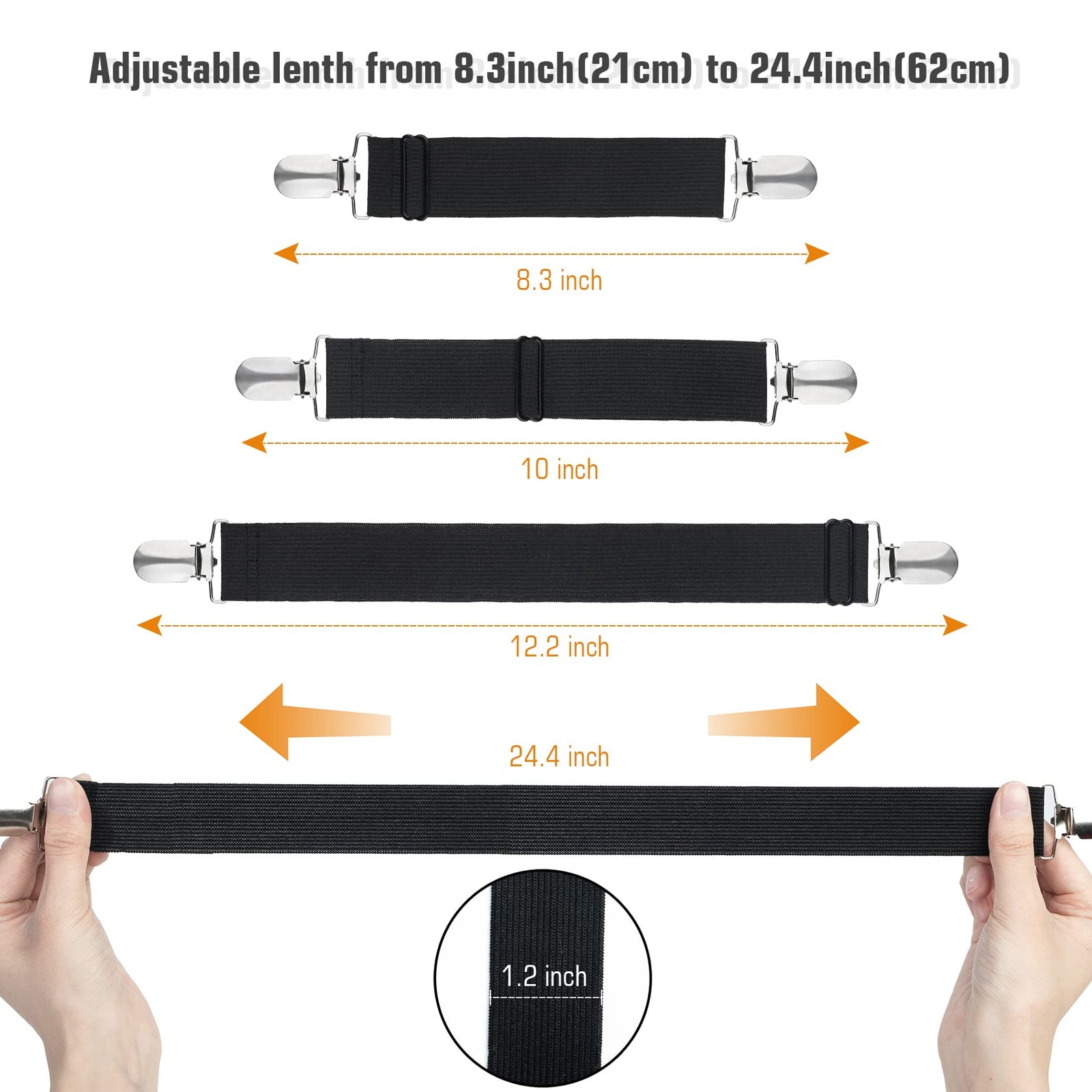 Bed Sheet Straps 8 Pack, Heavy Duty Mattress Cover Clips, Black