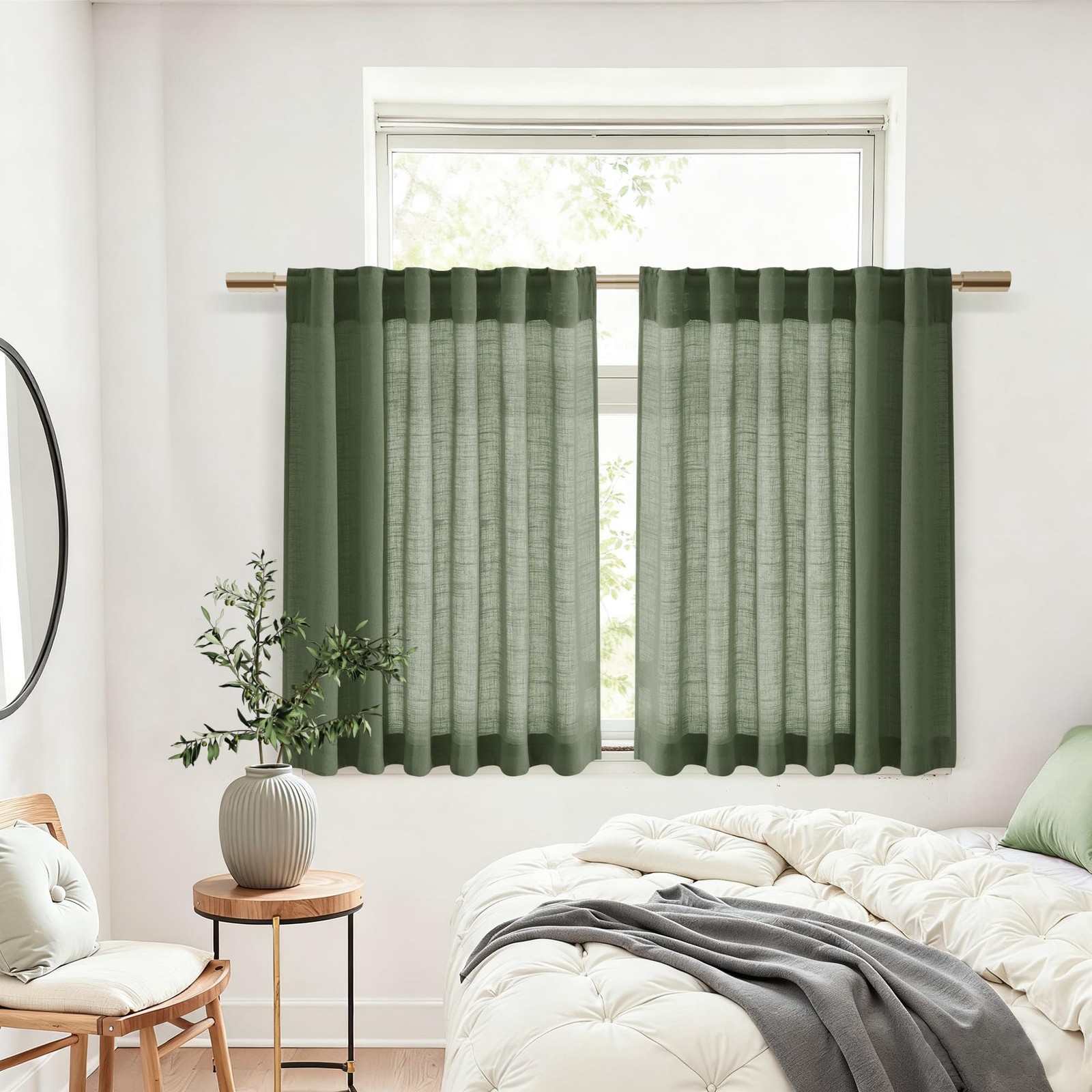 как выглядит Linen Kitchen Curtains Cafe Tier Window Treatment Loden Green 36x30 In 2 Pk фото