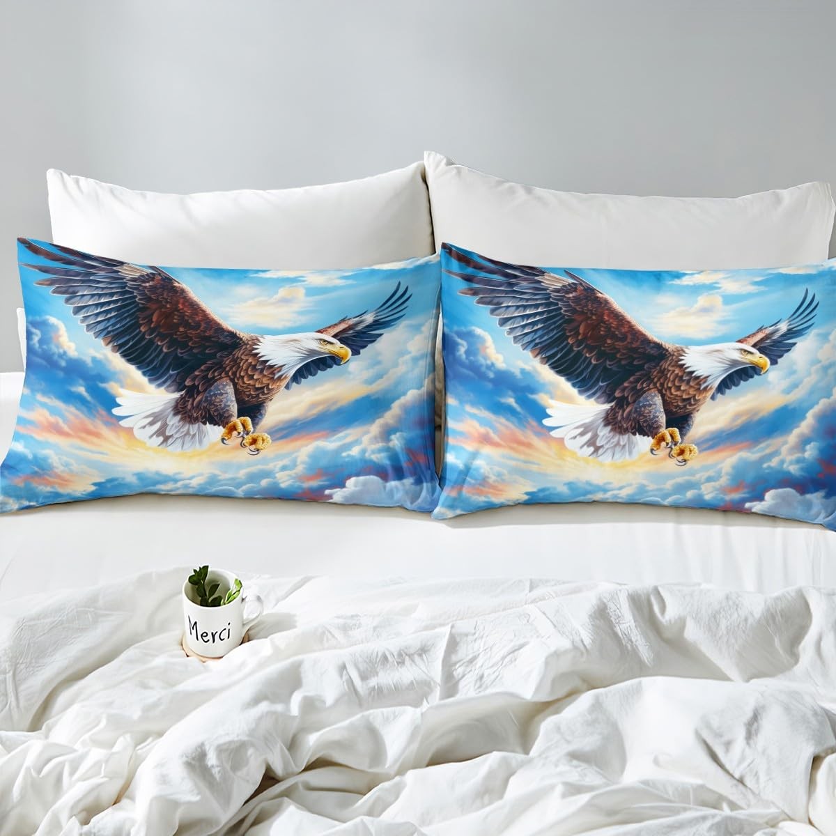 Eagle Kids Fitted Sheet Twin Size,Blue Sky White Cloud Bedding Set,Boys Girls...