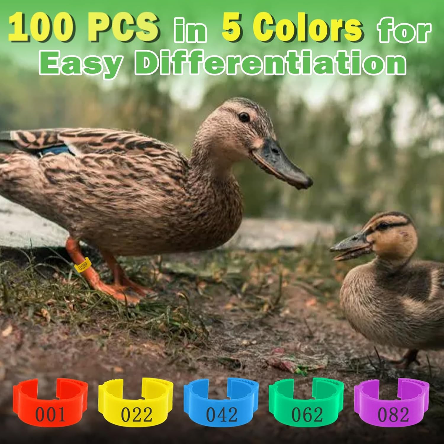 100 Pcs Adjustable Chicken Leg Bands Tags, Colorful Readable Numbered PVC Ide...