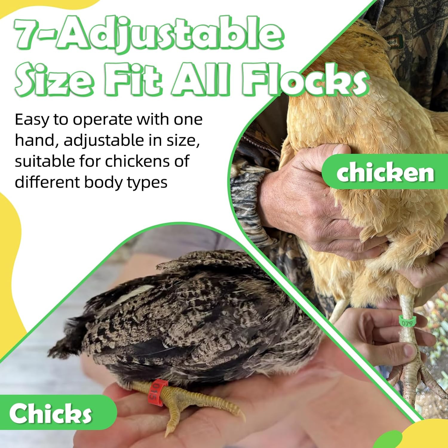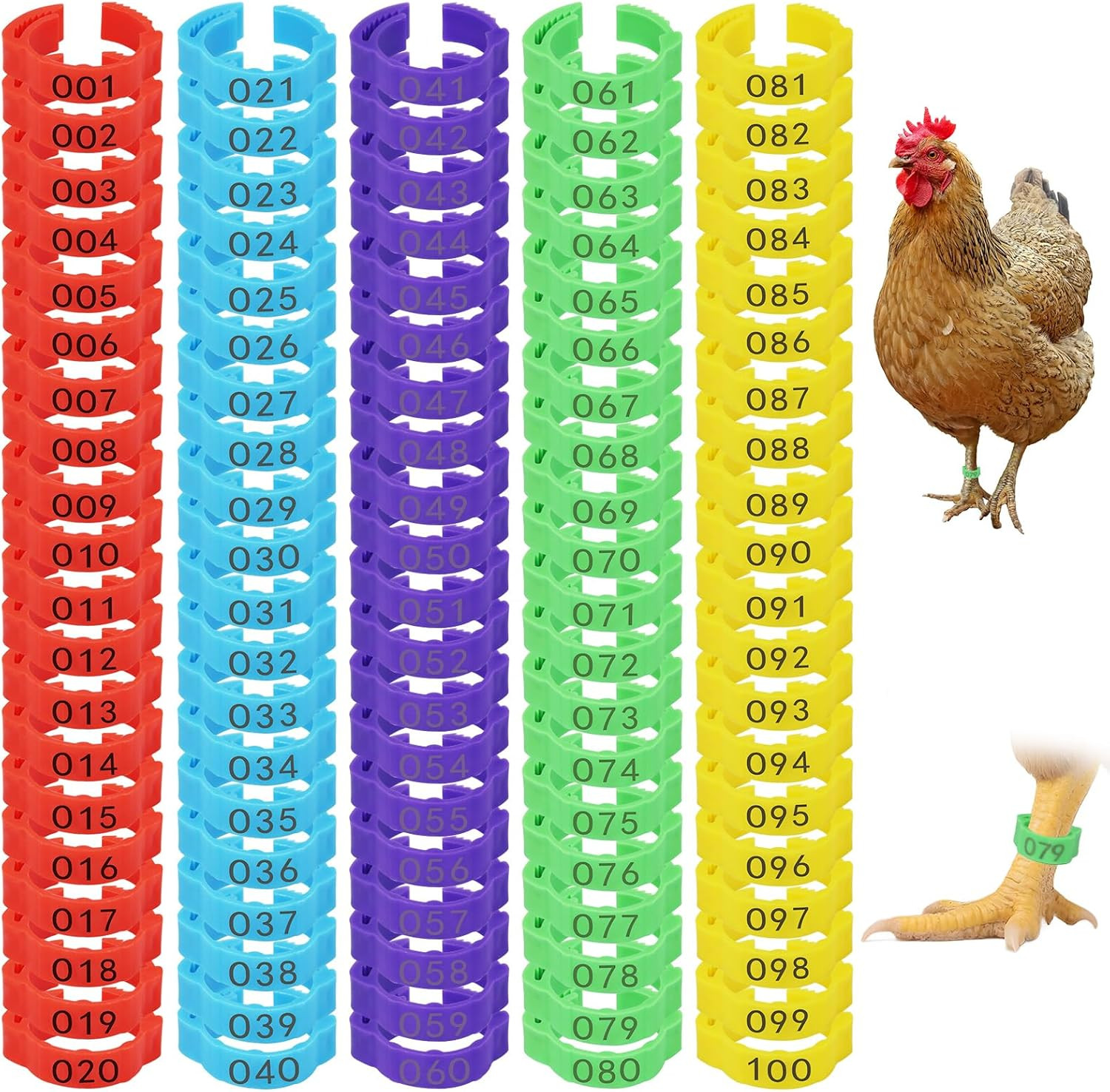 7Size-Adjustable Chicken Leg Bands, Plastic Poultry Rings with 1-100 Number f...
