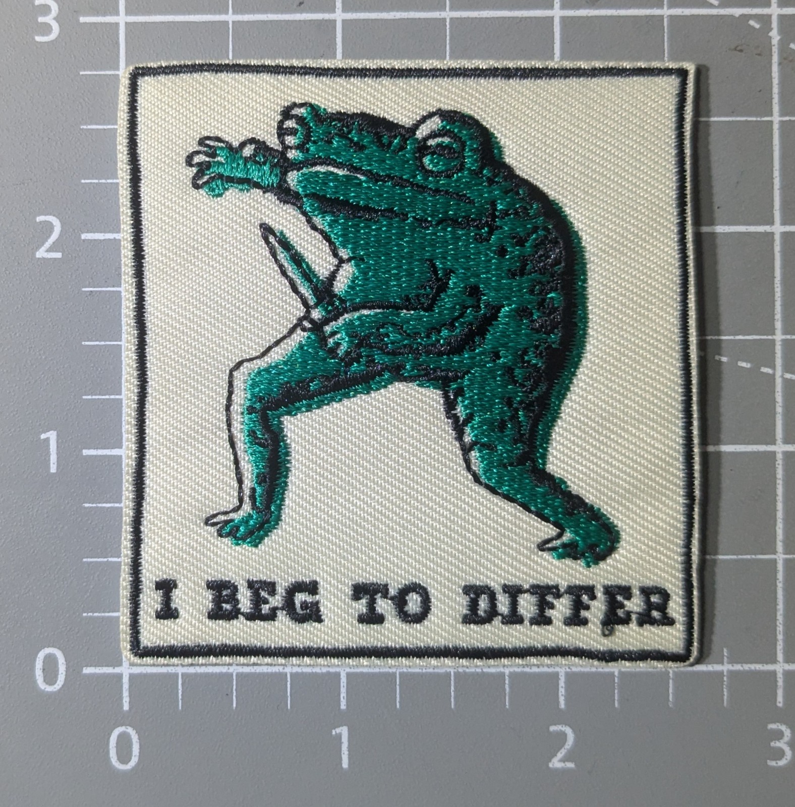 Funny Patch I Beg To Differ Violet Frog Animal Fight Embroidered Iron On 3.5