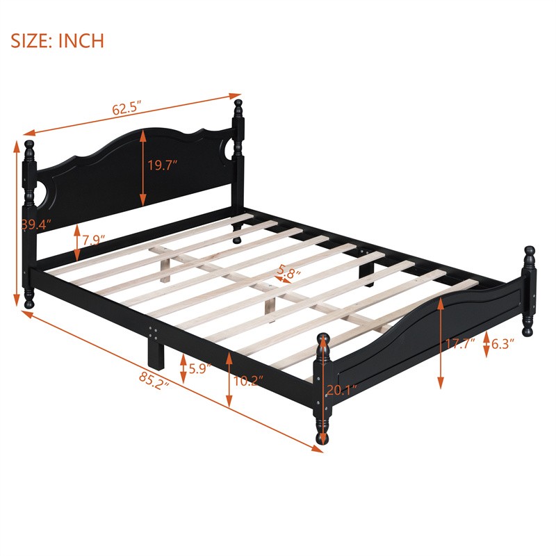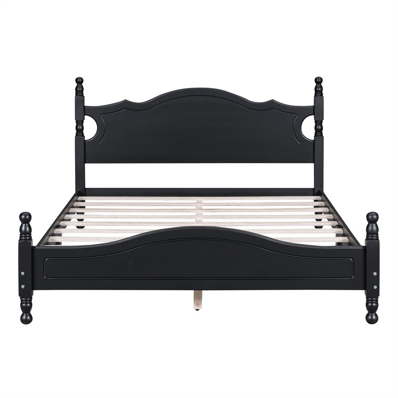 Queen Size Wood Platform Bed Frame with Wooden Slat Support, Retro Style, Black