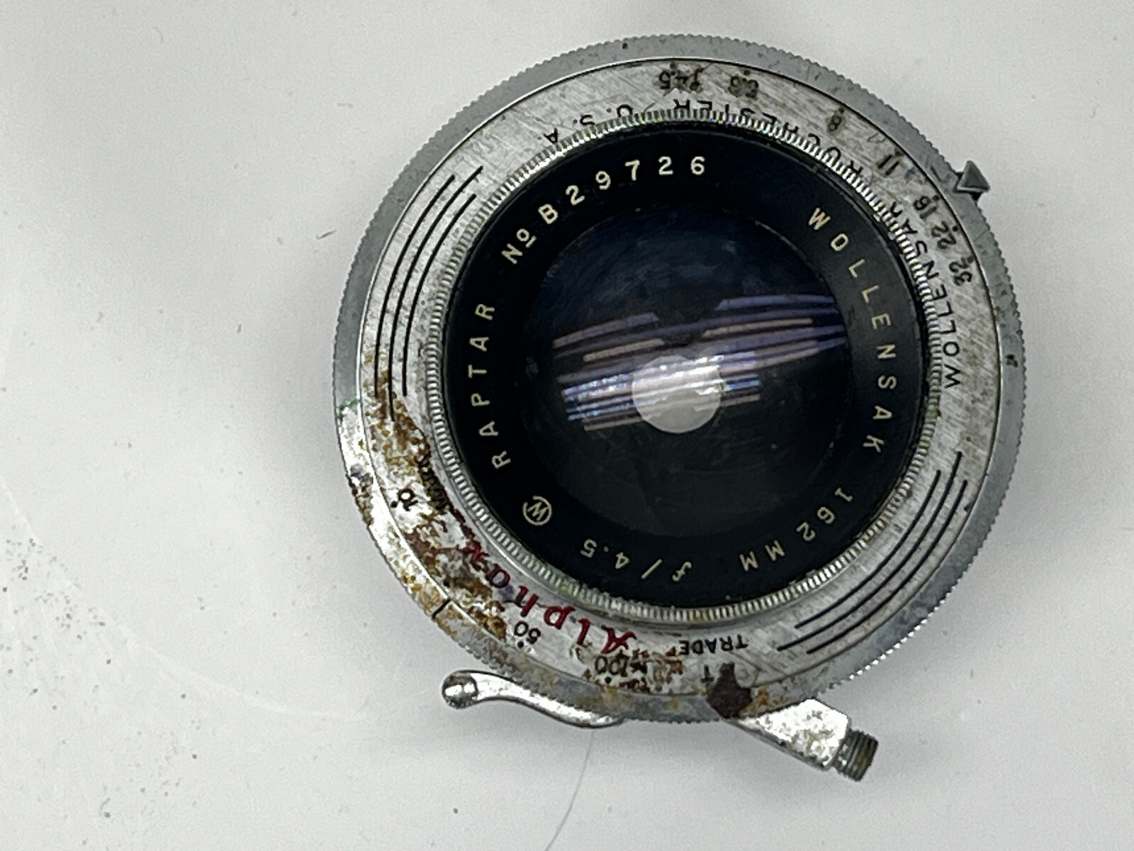Wollensak Alphax Large Format Shutter/Lens 4.5 F3.5 / raptar 162mm lot - as is