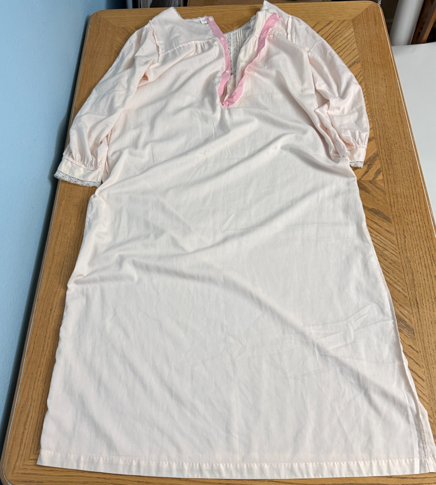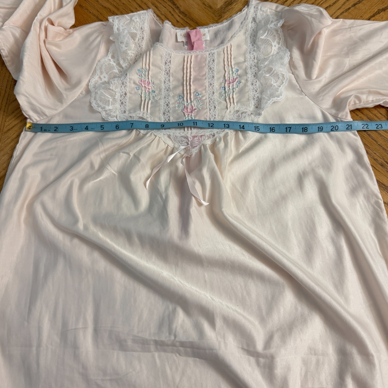 как выглядит Barbizon Nightgown Full Length Pink Lace Front Floral Embroidery Size L Vintage фото