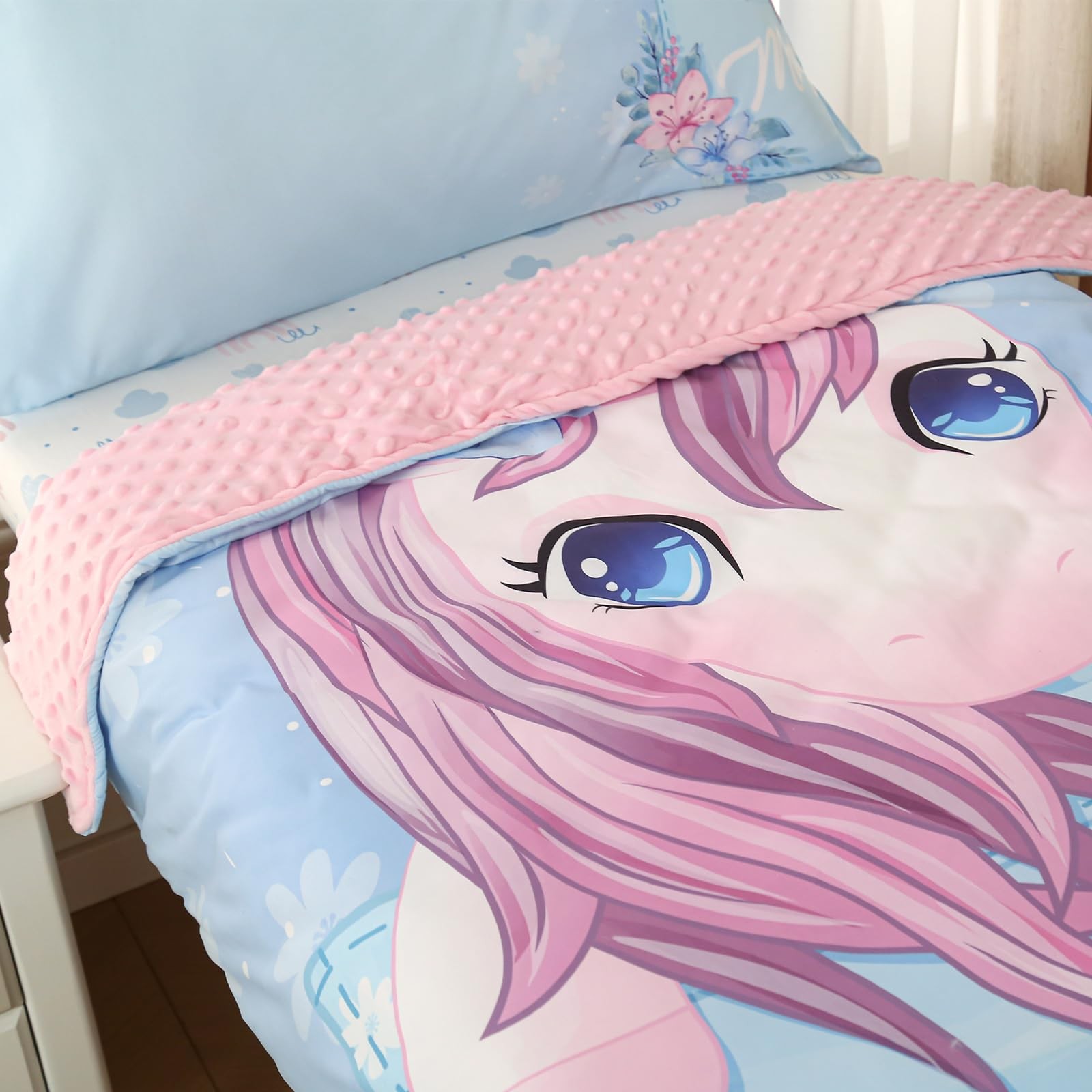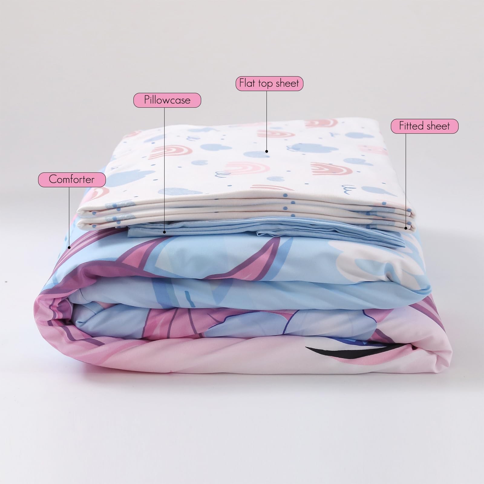 4 Piece Toddler Bedding Set for Girls,Soft Crib Bed Sheets Set in a Bag Inclu...