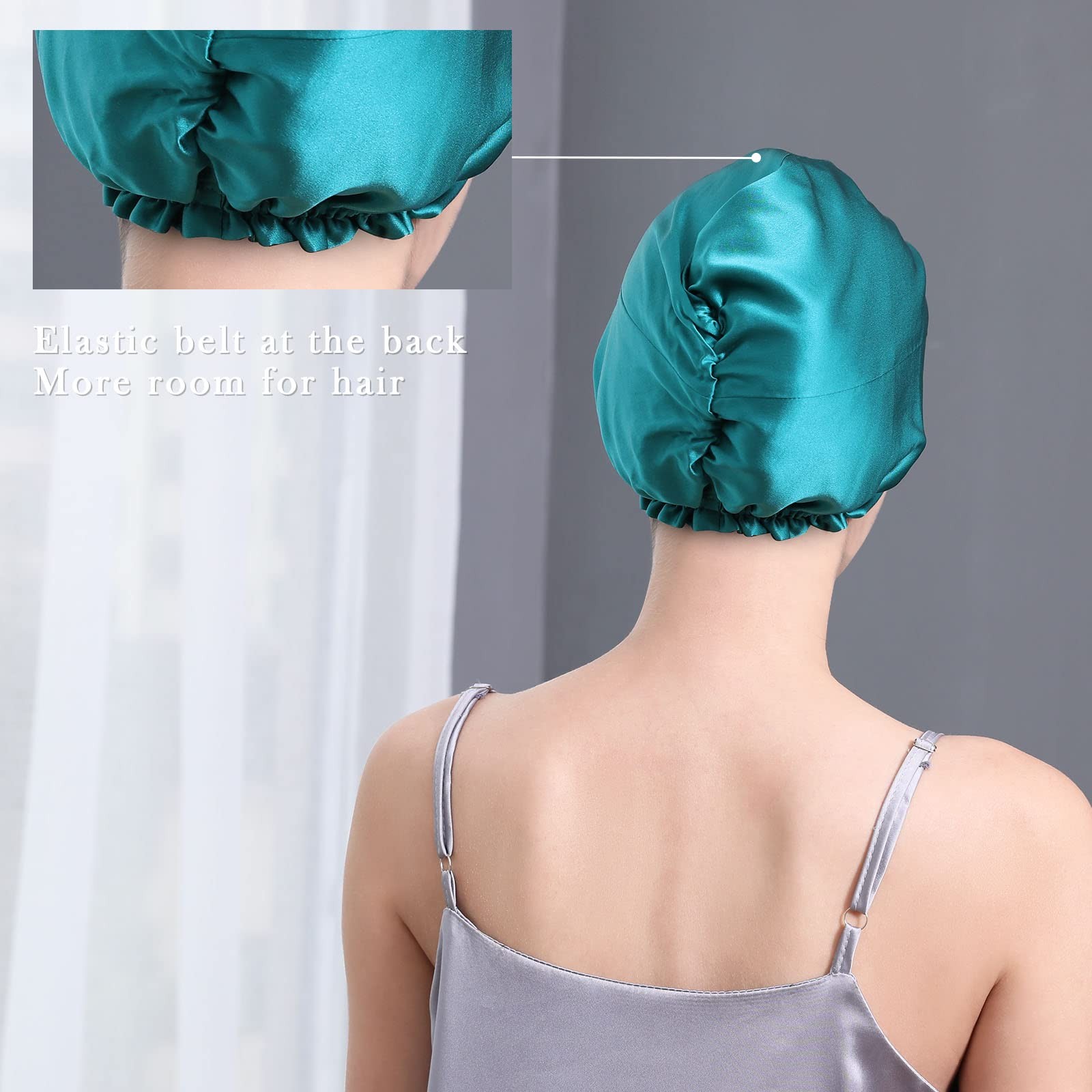 100 Mulberry Silk Bonnet for Sleeping Women, 22 One Size, Peacock Blue-za