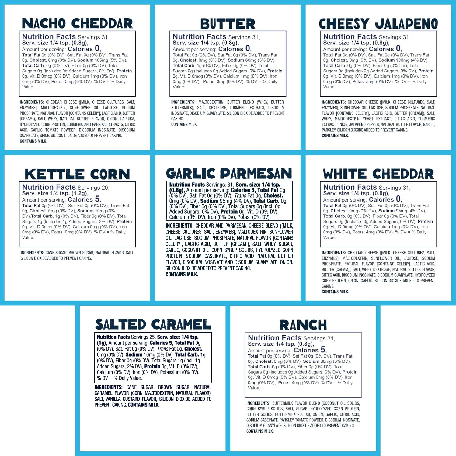 Kernel Season's Popcorn Seasoning - EIGHT Mini Jars Variety Pack, 0.9 Ounce ea