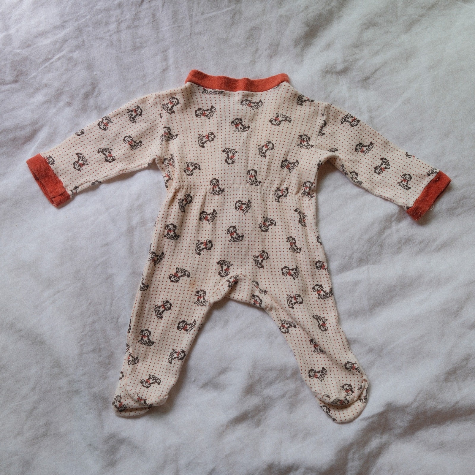 Vintage Puppy Print Footed One-Piece Pajamas 1-3 Months - Read Description