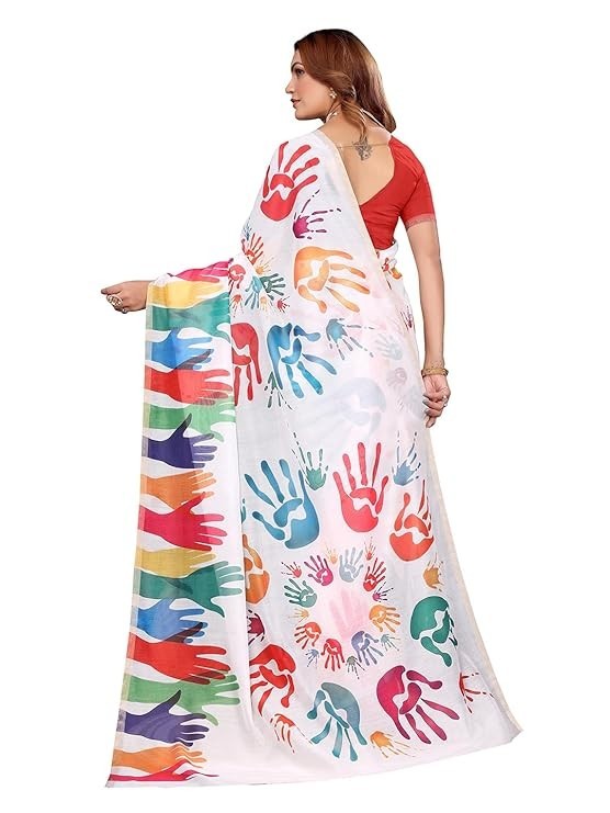 SILK MILLS Women's Multi-Color Chanderi Casual Wear Saree Holi Chanderi