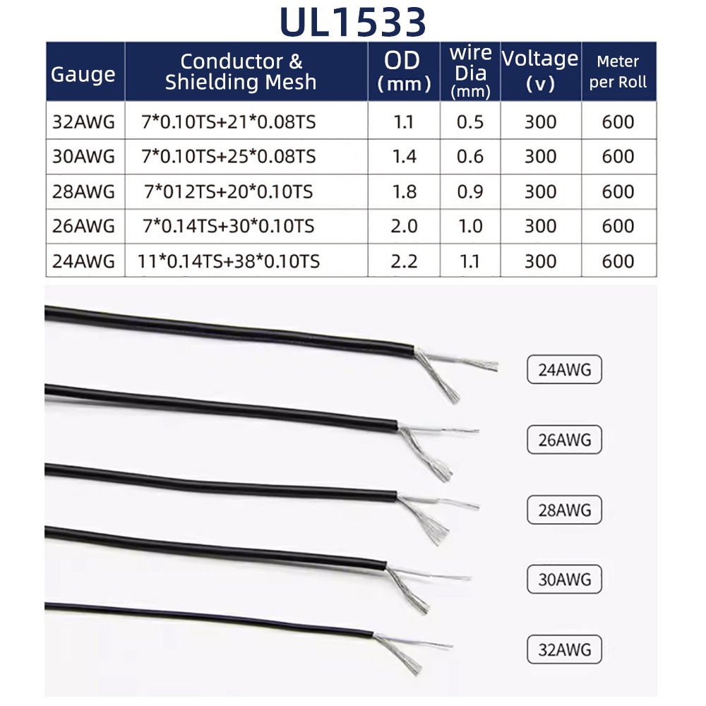 UL1533 32AWG-24AWG Single Core Shielded Cable Wire Audio Signal Sheath Cable