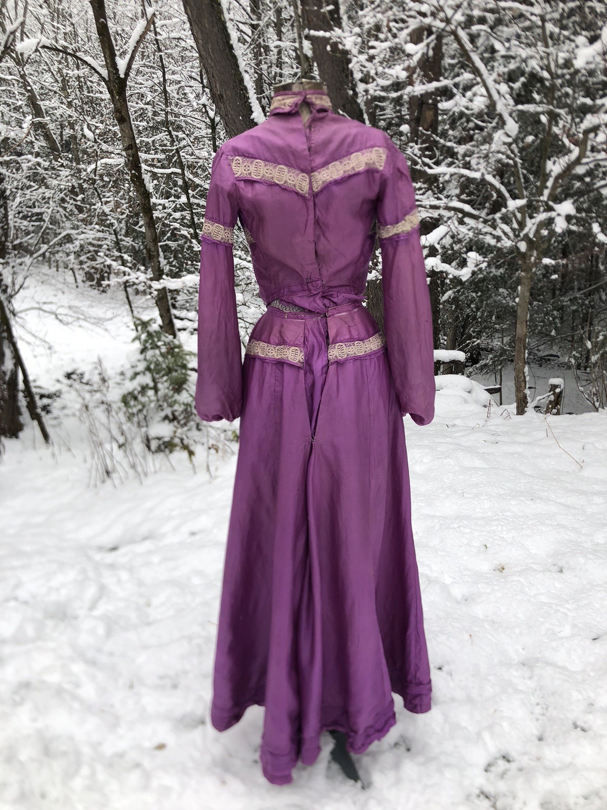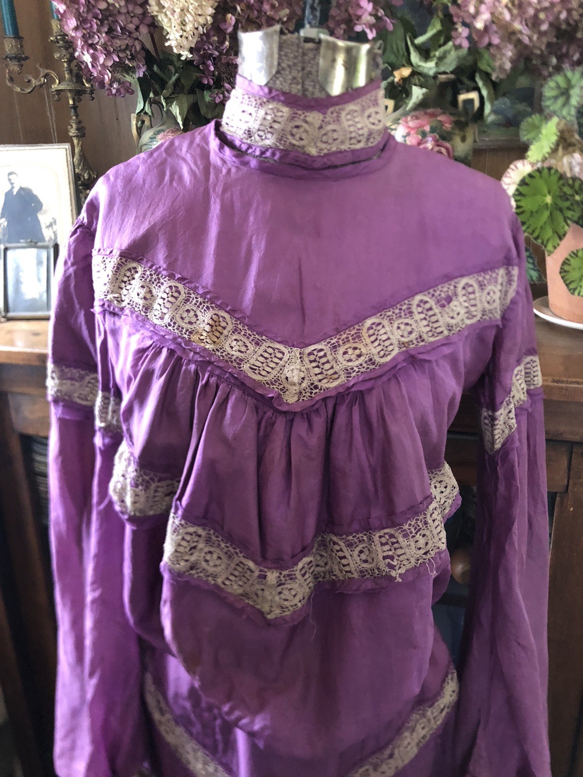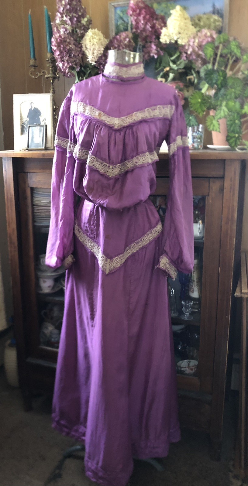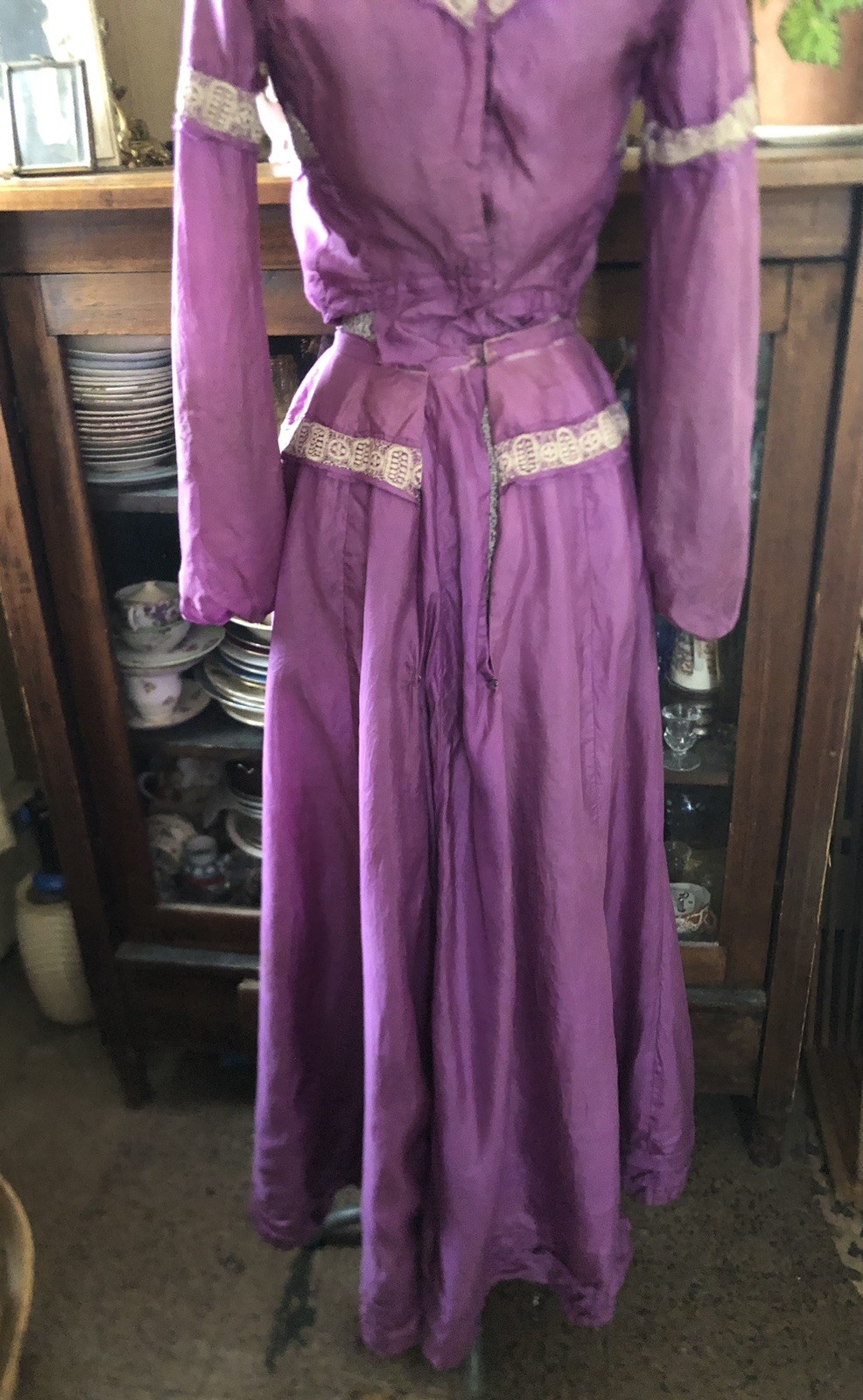 как выглядит Vintage Antique 1800 s 1900 s Purple Silk Bodice Bustle Skirt 34-24-46 фото