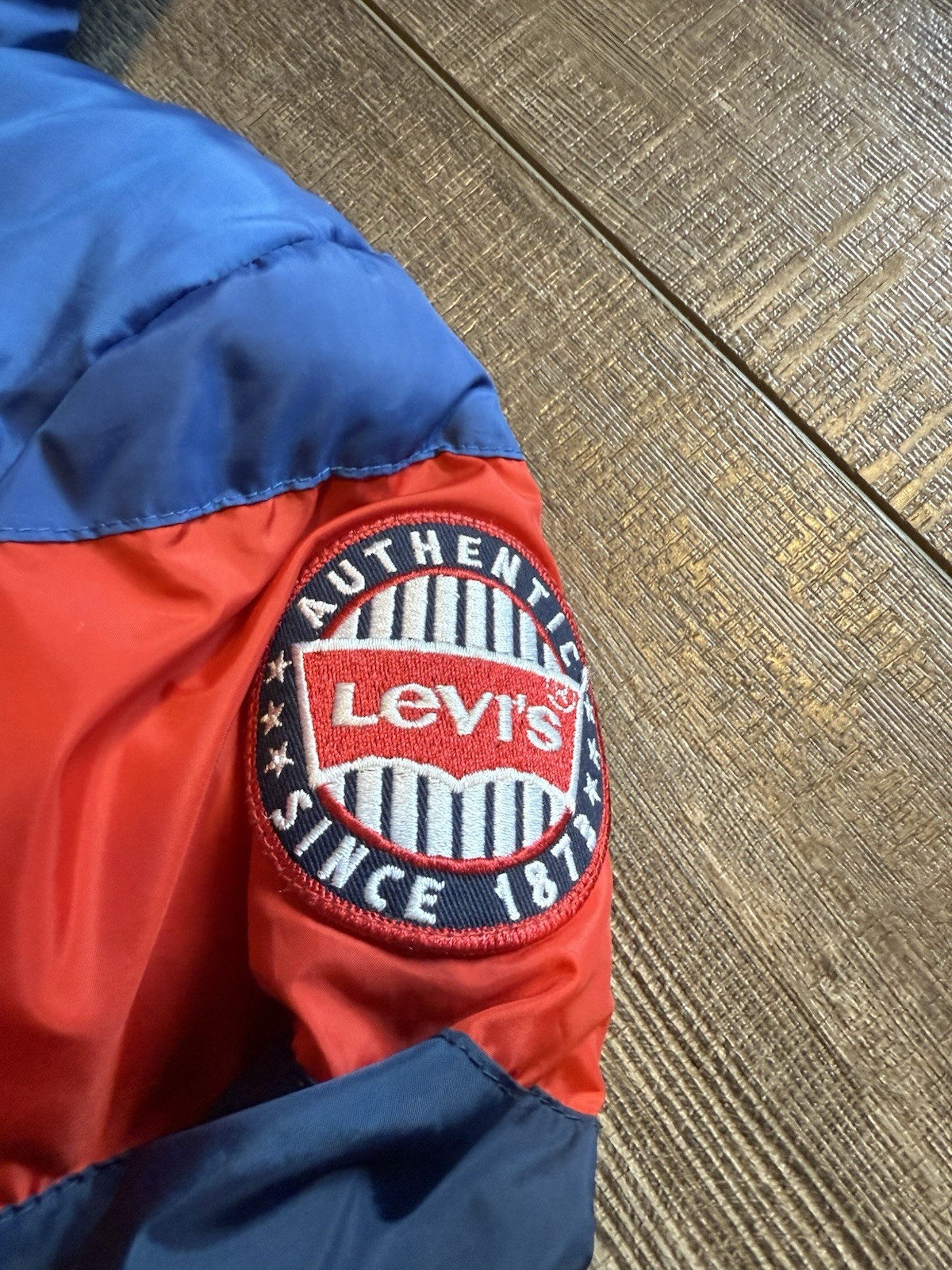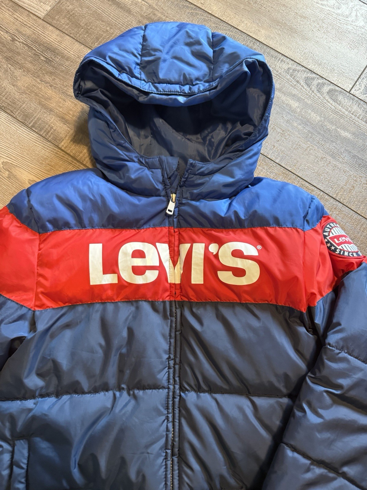 как выглядит Levi Strauss Boys Puffer Jacket Levis Size Large 12/13 Years Red White Blue фото