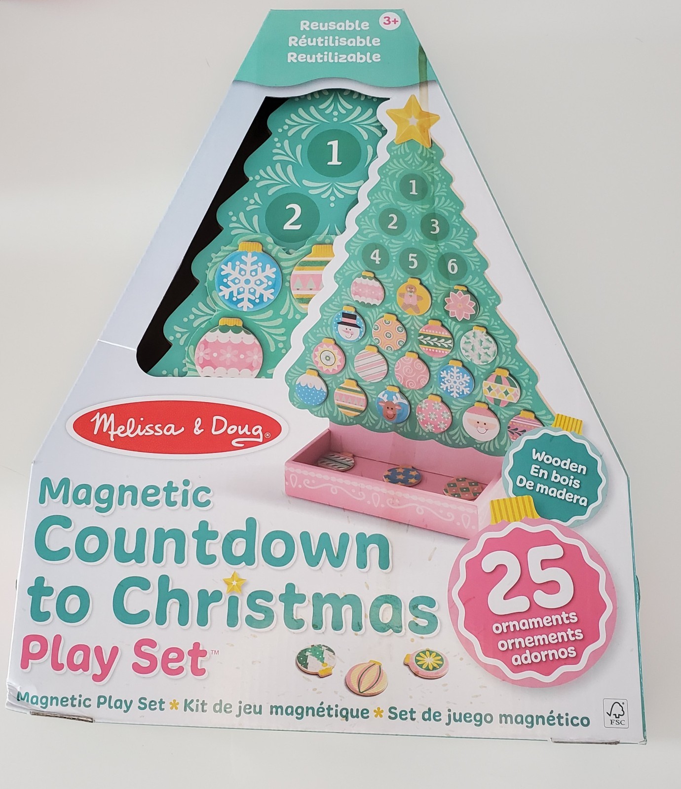 RARE Pink Melissa Doug Wooden Magnetic Advent Calendar Christmas FSC