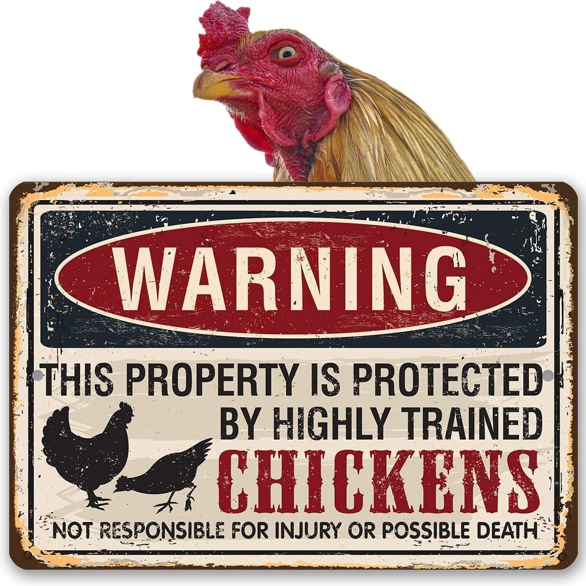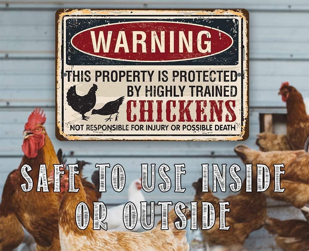 Chicken Signs for Coop Funny Outdoor - Property Protected by Chickens Funny C...